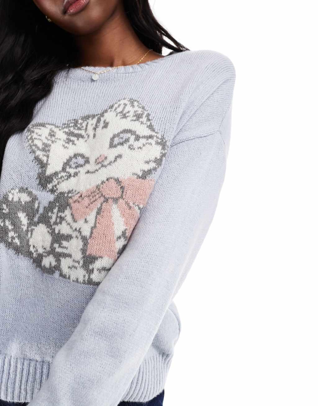 Miss Selfridge knit cat bow sweater