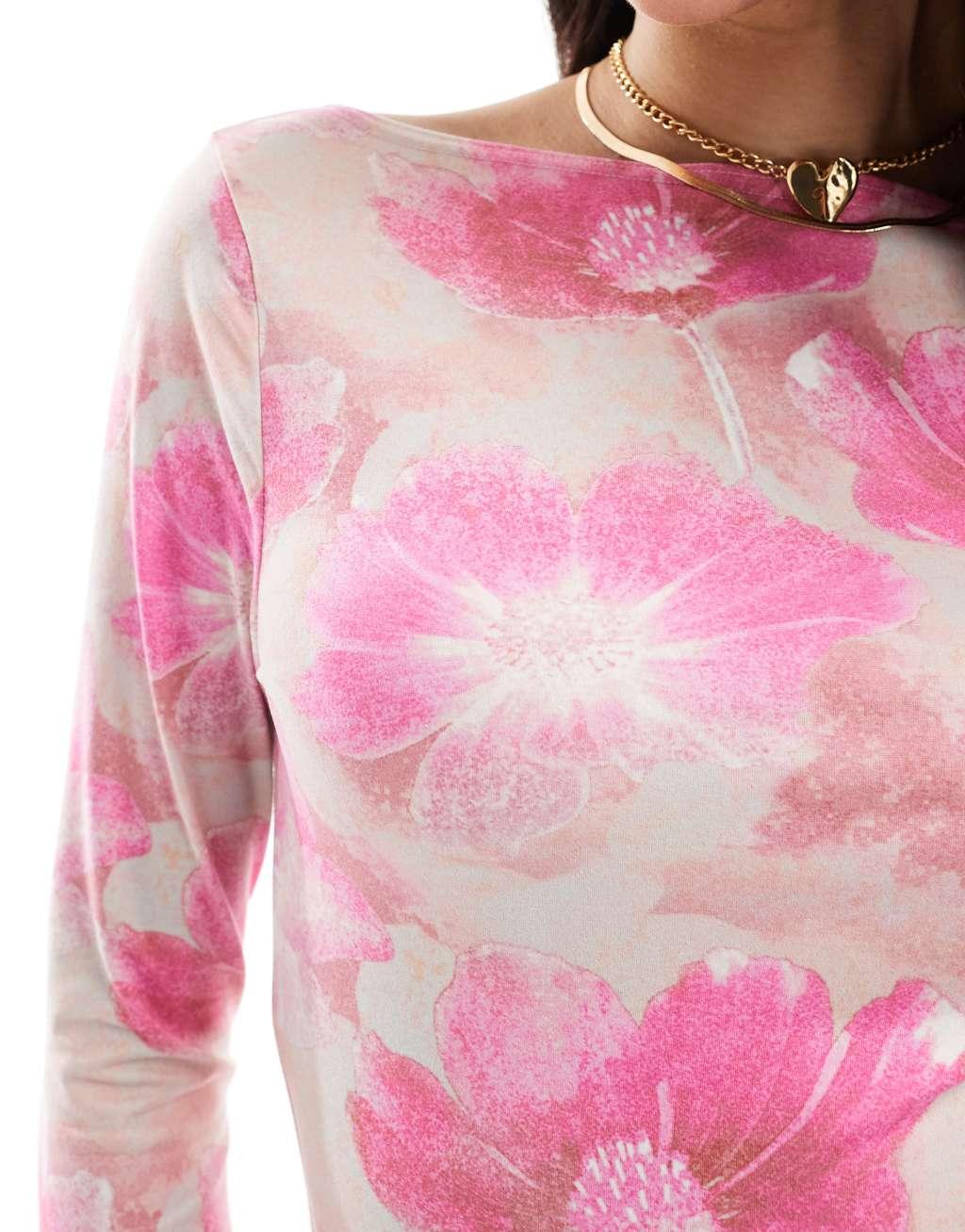 Miss Selfridge printed jersey pink abstract floral top