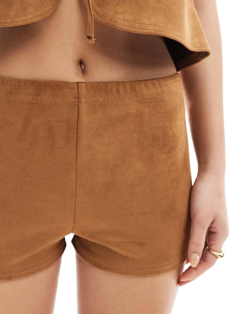 Miss Selfridge western suede look booty shorts in tan | ASOS