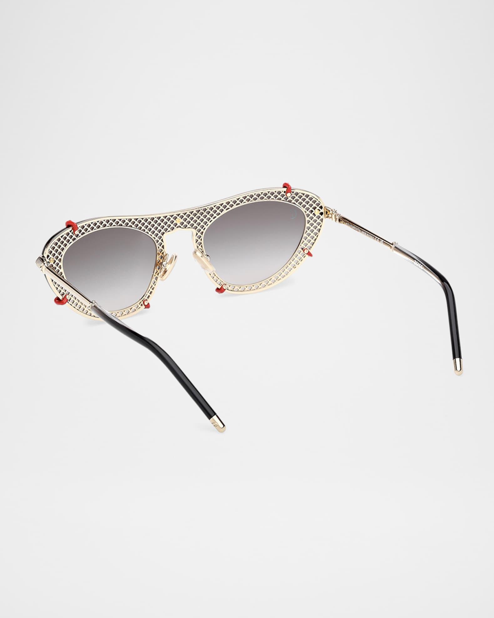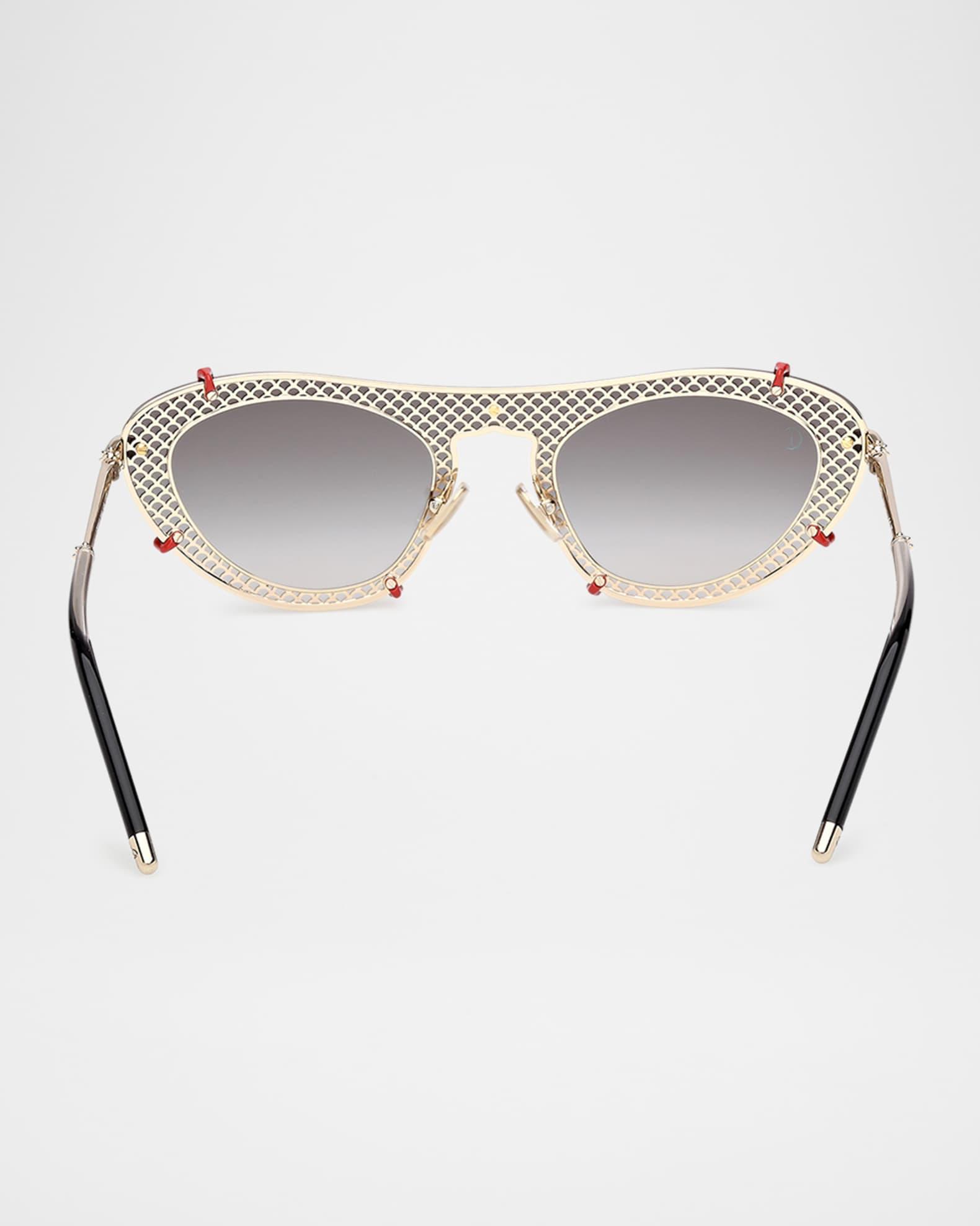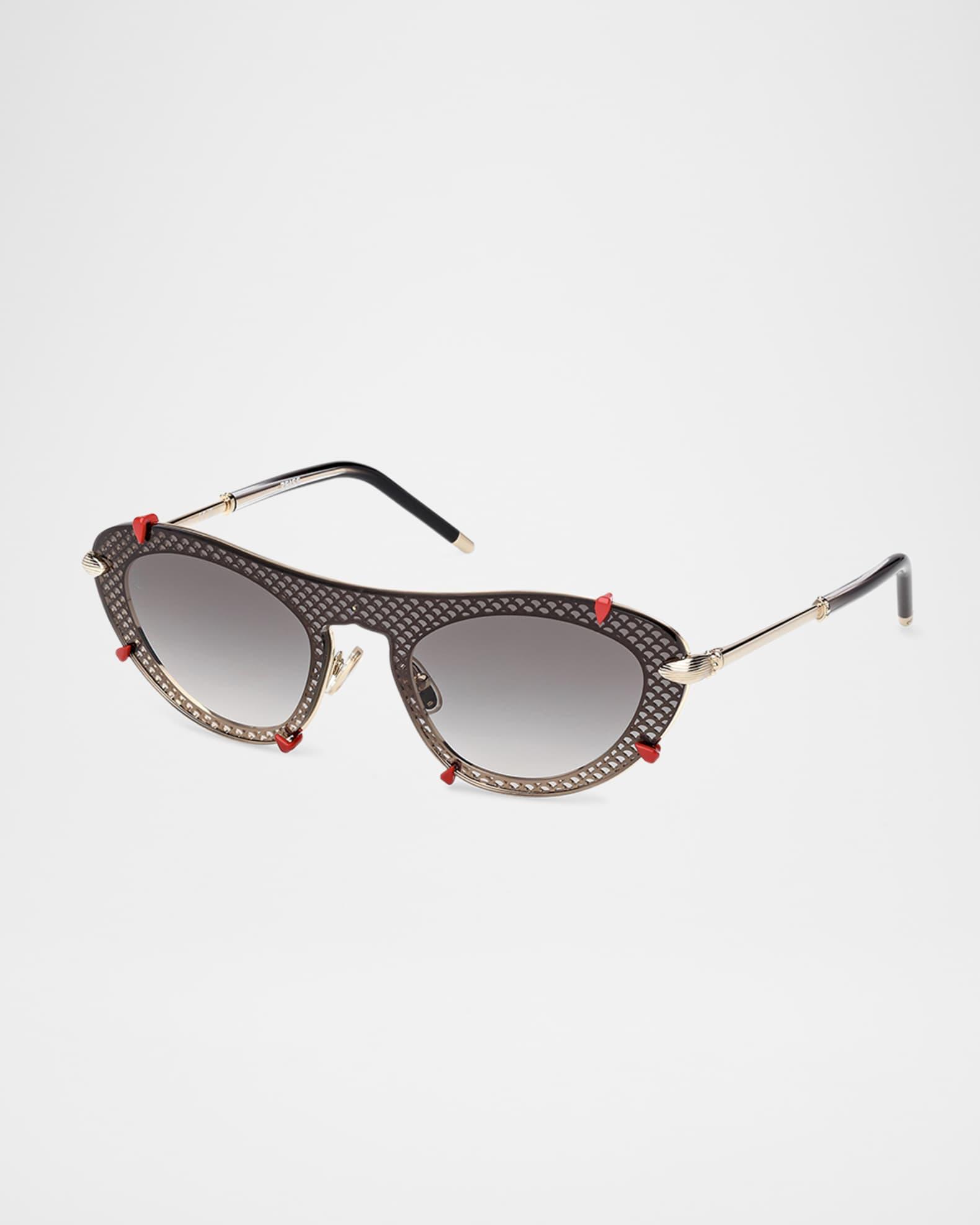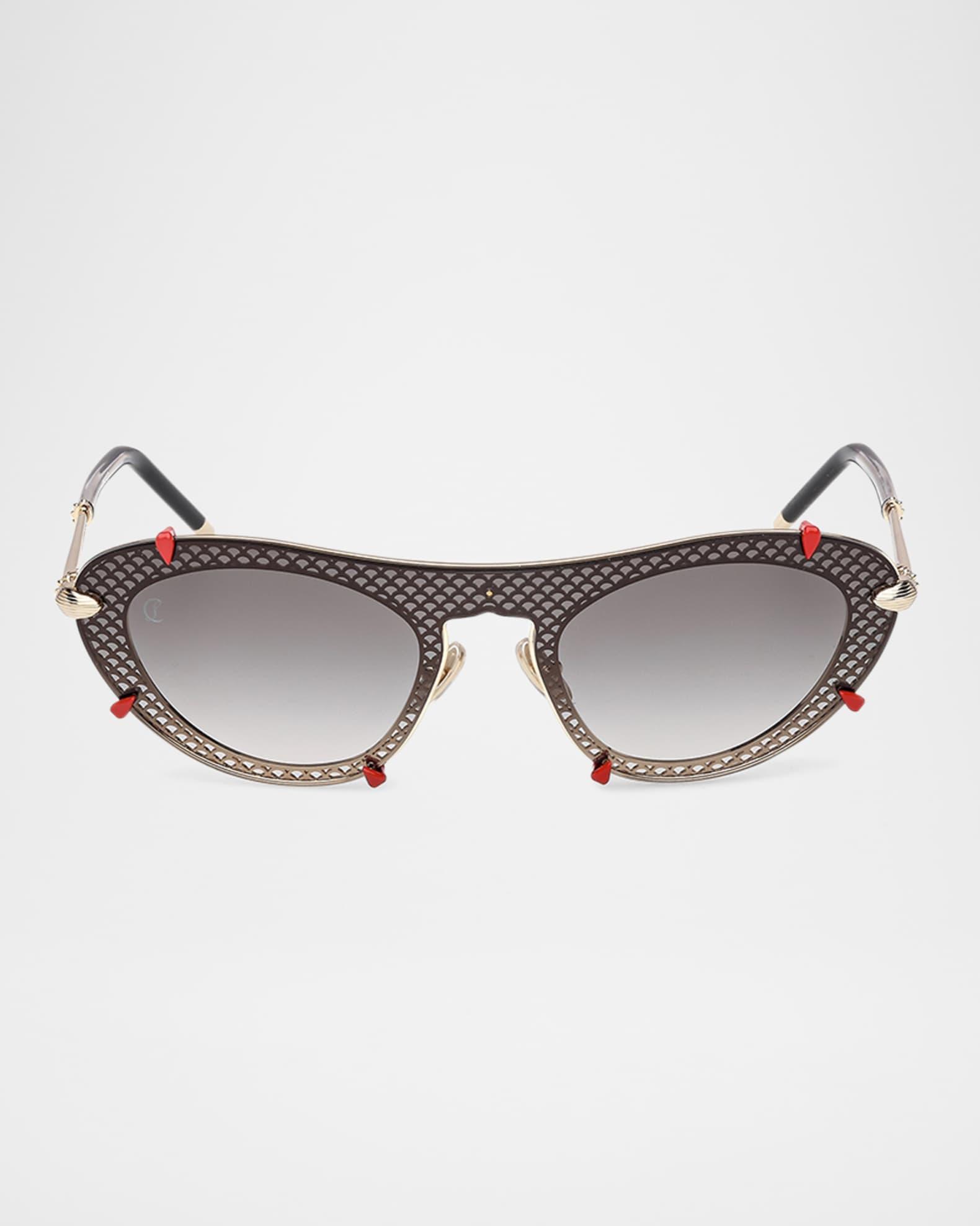 Christian Louboutin oval sunglasses in acetate Eye/bridge/temple (in mm): 00-0-132 Gradient lenses Adjustable nose pads Thin, tapered arms Logo at lens Metal Spot clean 100% UVA/UVB protection Made in Italy Proposition 65 warning for California residents