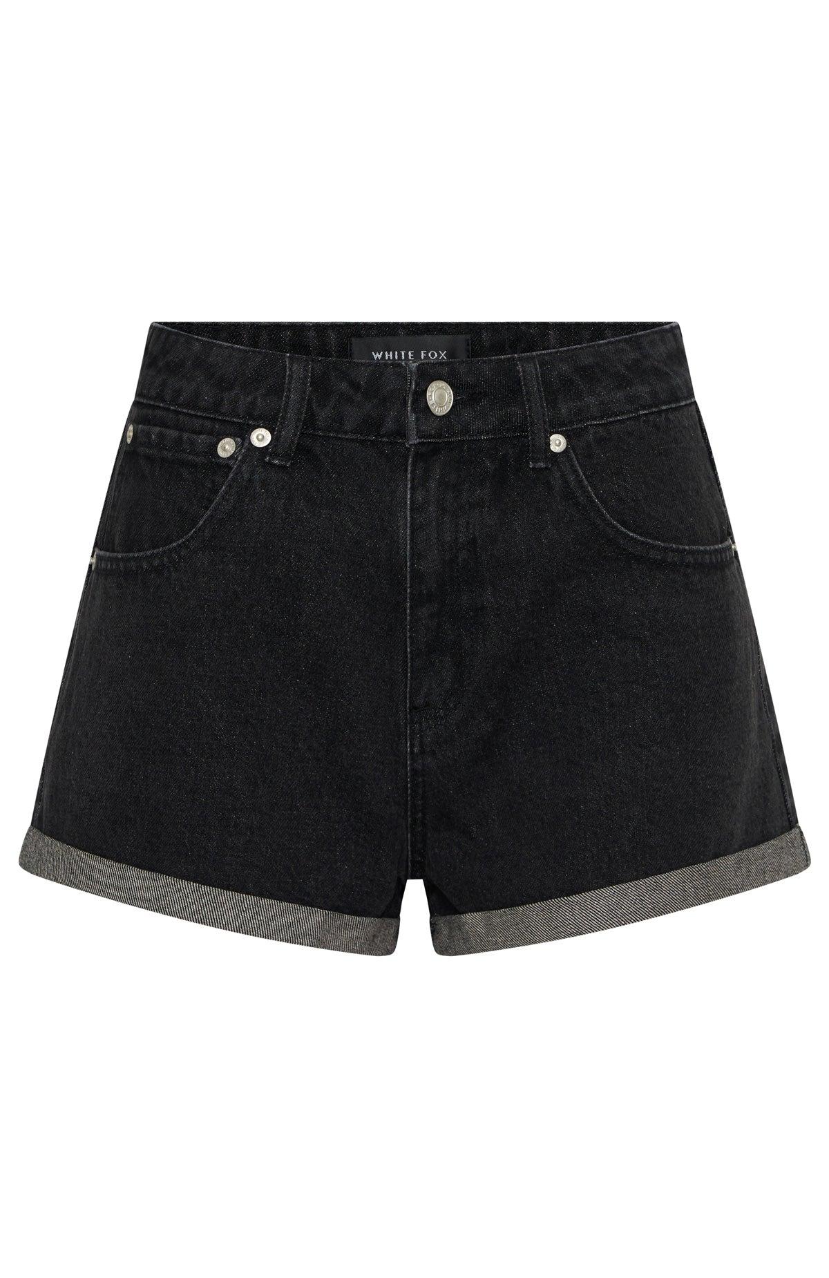 WHITE FOX DENIM The Missin' Something Denim Shorts in Black Acid Wash are a weekend staple! These high waisted denim shorts are high waisted with button closure and zipper, 5 pocket design and belt loops. Complete the look with a cute crop top and slides for the perfect summers day look! 100% Cotton Mik is 171cm & wears a S Inseam length: 5.5cm