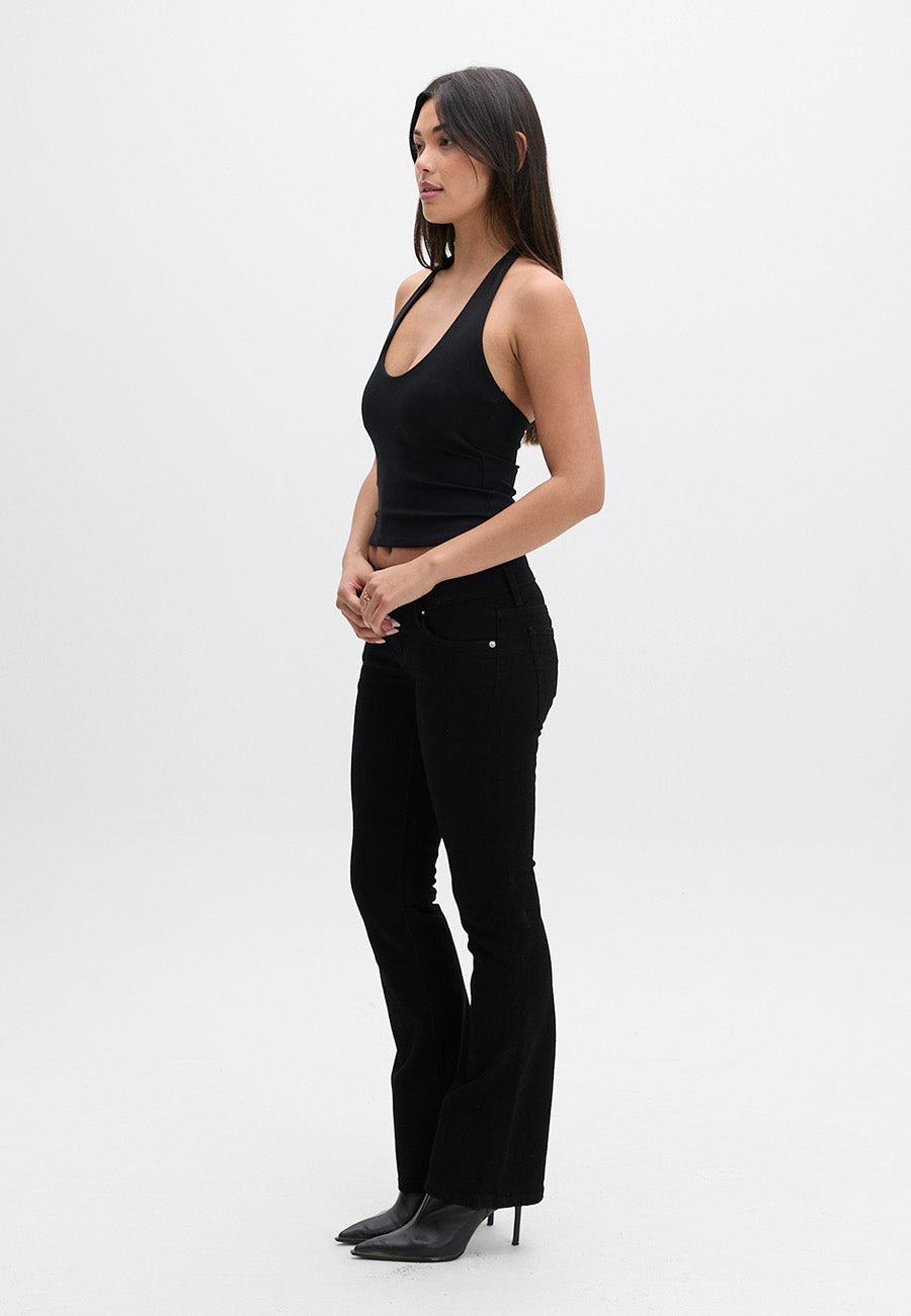 A signature Ética fit, reimagined in a deep black, Eclipse wash. Low-rise with a lean fit through the hip, opening into a slight bootcut for subtle shape. Structured in rigid denim to hold its attitude - undone, vintage-inspired, and endlessly cool.