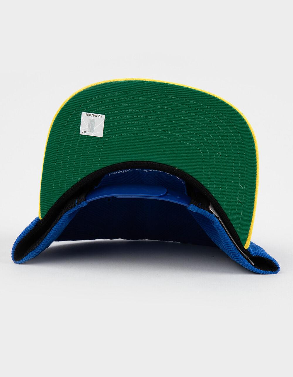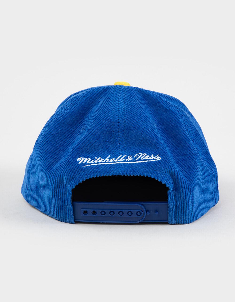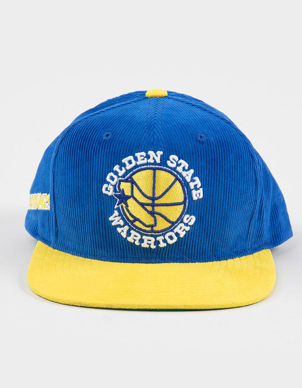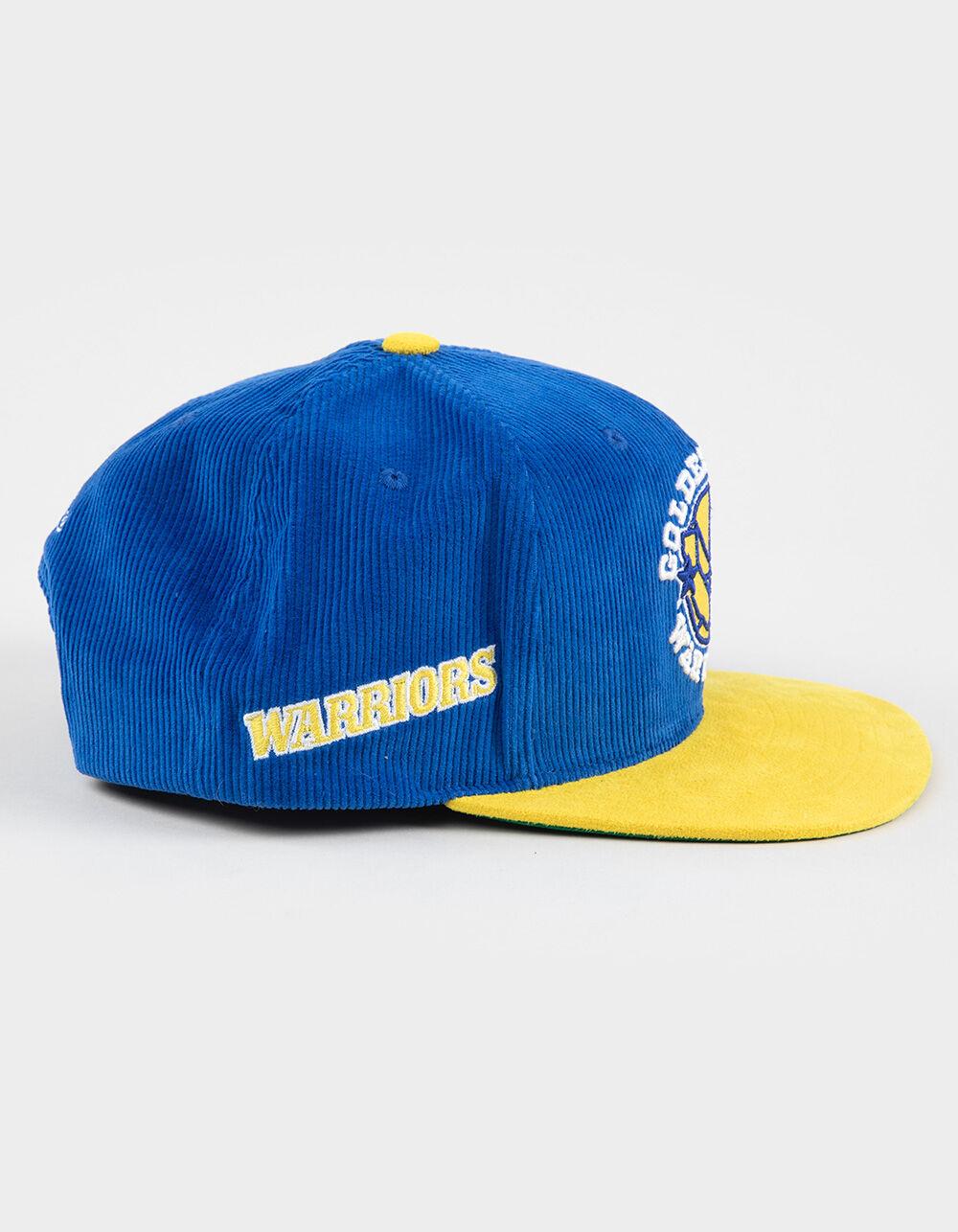 Mitchell & Ness Golden State Warriors Corduroy Snapback Hat. This Warriors hat features a corduroy crown and suede on top of the bill. Golden State Warriors embroidery on front. Flat bill. Embroidery on right side. Adjustable snapback closure. Mitchell & Ness embroidery over closure. 100% Cotton. Imported.