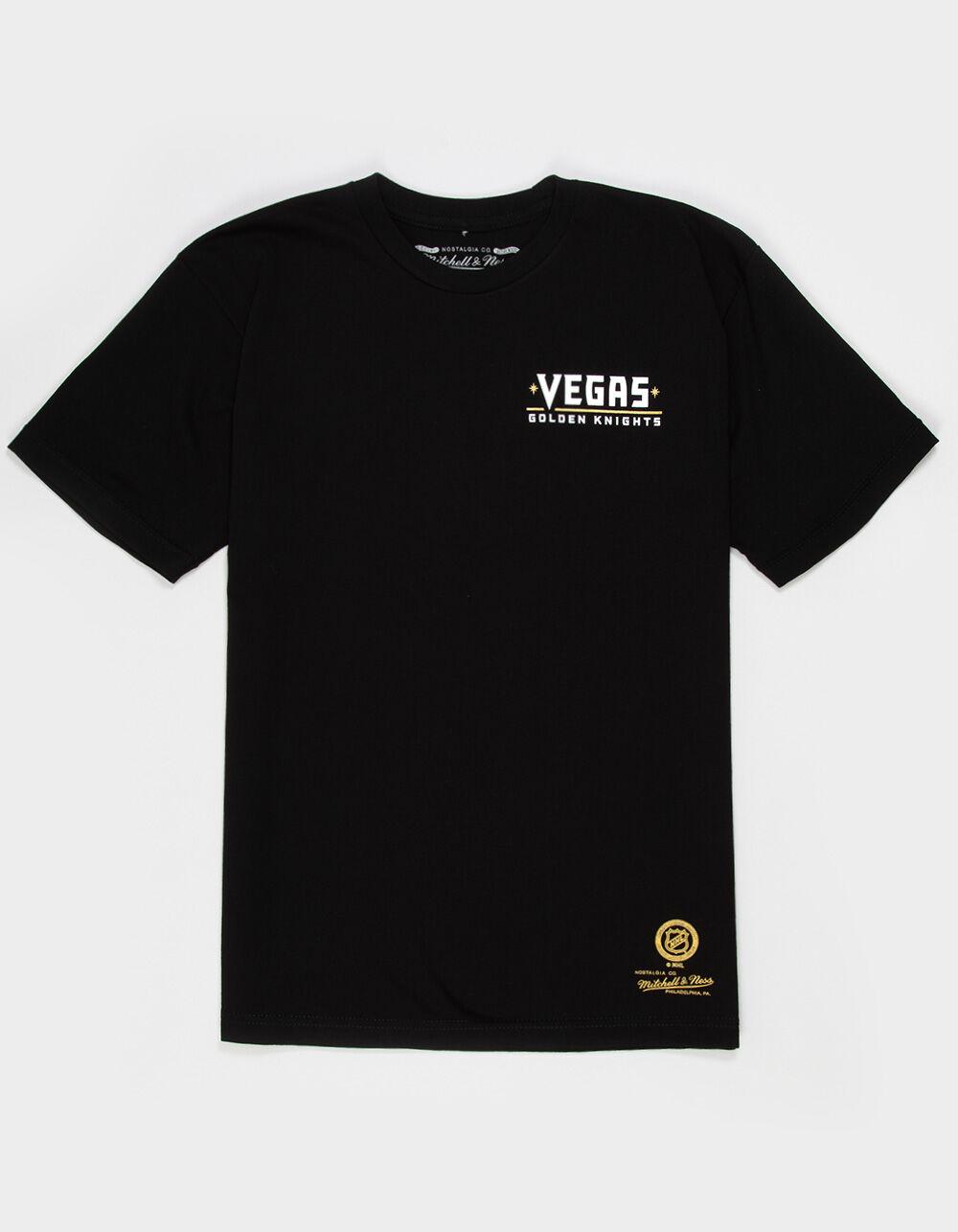 Mitchell & Ness NHL Las Vegas Golden Knights Champs Tee. Graphic screened at left chest. Large graphic on back. Crew neck. Short sleeve. 100% Cotton. Machine wash. Imported.