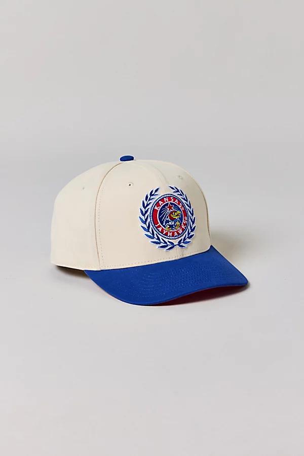University of Kansas Jayhawks team logo hat by Mitchell & Ness. Cap in cotton twill with embroidered detailing. Features a contrast brim and adjustable snap closure back. Features Mitchell & Ness University Of Kansas Jayhawks team logo hat Paneled cotton twill University of Kansas team logo Contrast brim Adjustable snapback closure Content + Care Cotton Spot clean Imported Size Adjustable circumference Mitchell & Ness University Of Kansas Jayhawks Team Logo Hat in Blue, Mens at Urban Outfitters