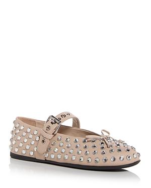 Miu Miu Womens Embellished Buckled Ballet Flats