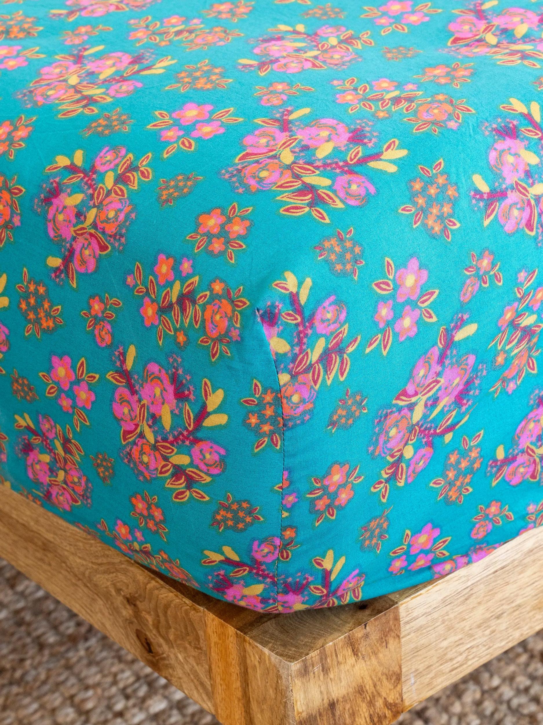 Mix & Match Cotton Flat Sheet - Blue Nora