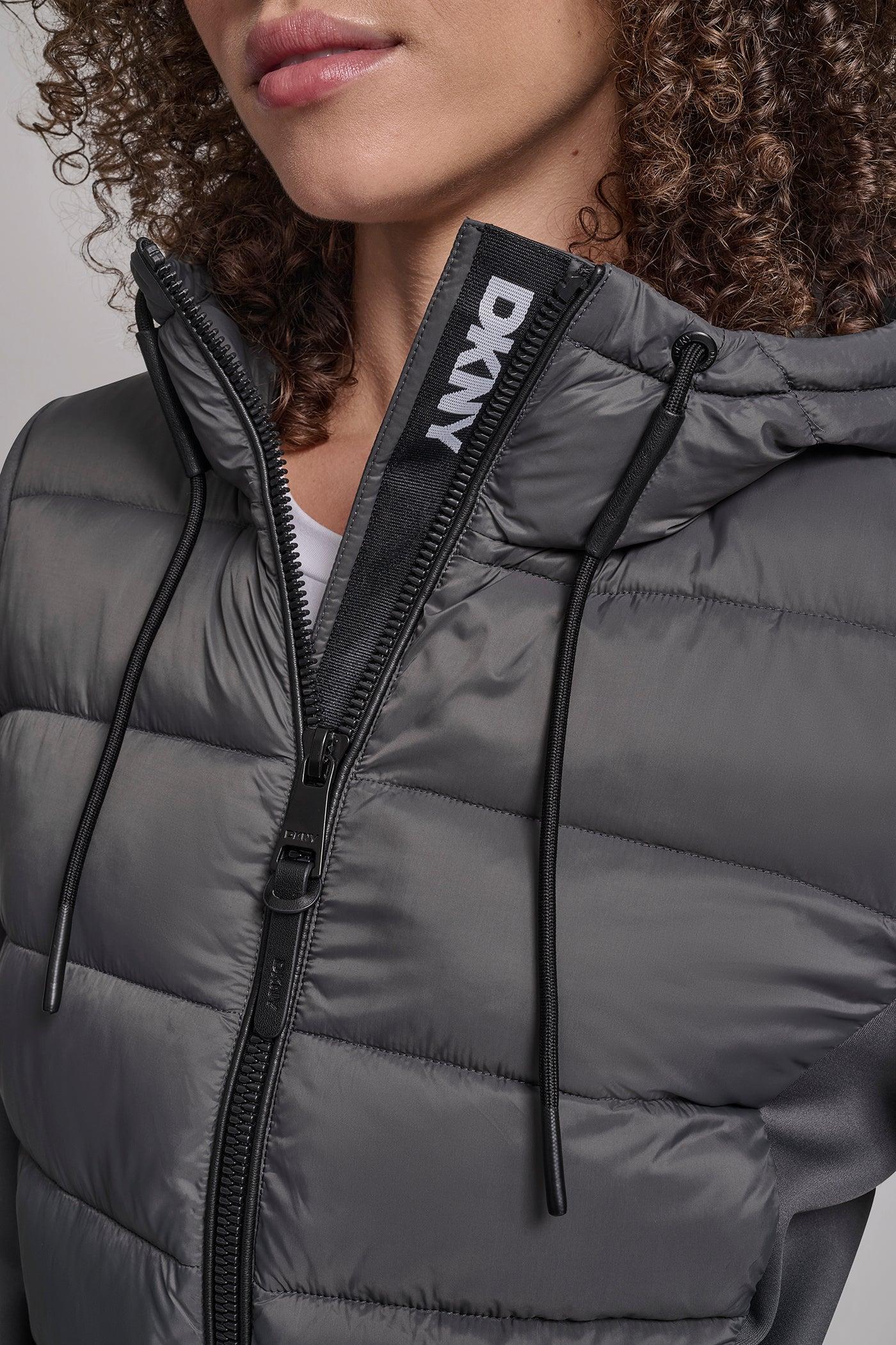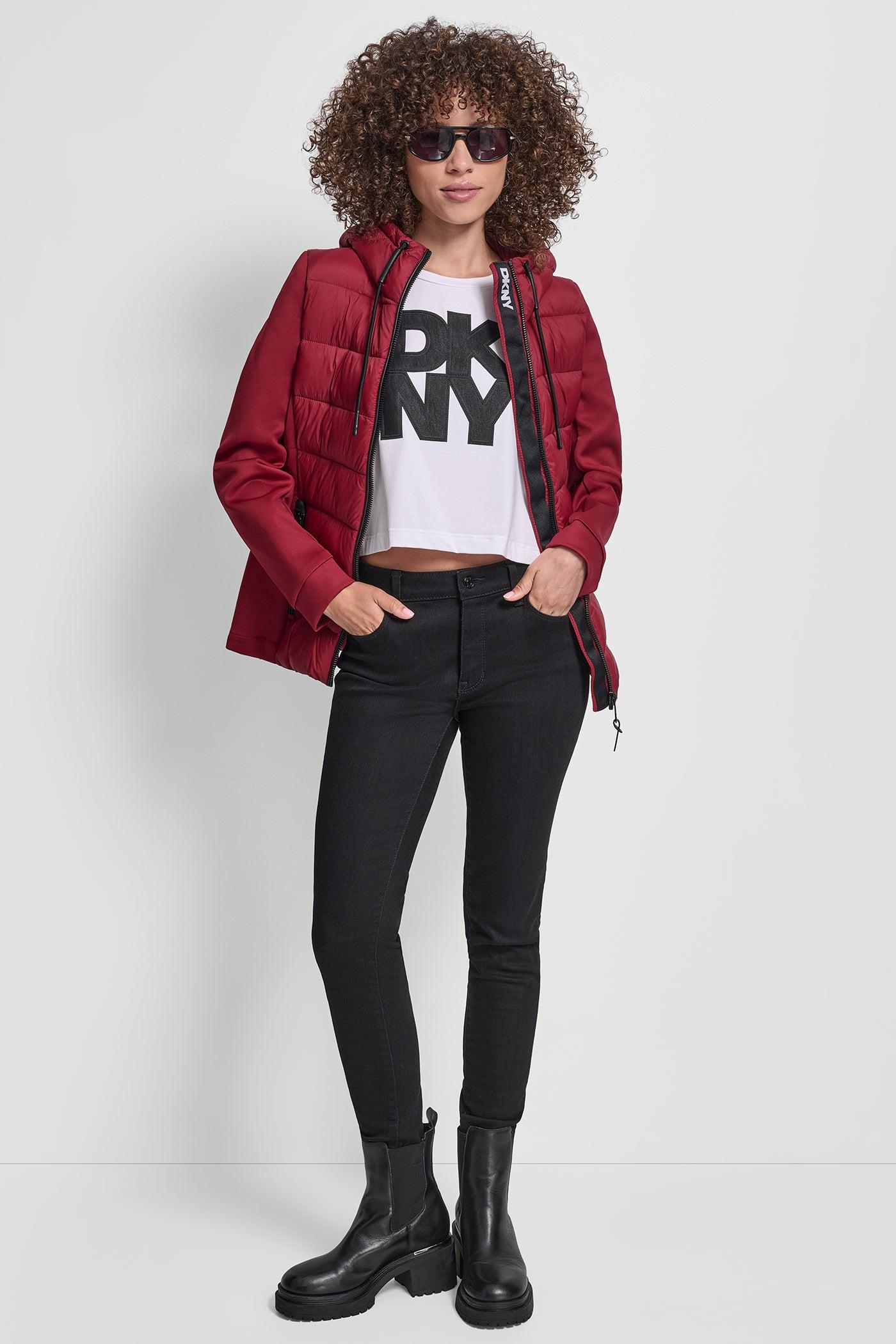 Straight Channel Mix Media JacketStraight silhouette with a modern channel-quilted bodyDurab...