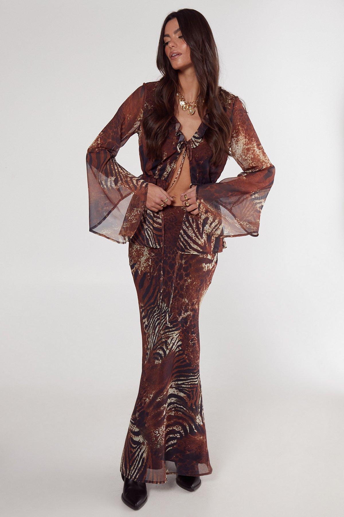 Mixed Animal Crinkle Chiffon Bias Cut Maxi Skirt