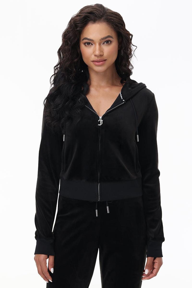 Womens Velour Flap Pocket Cropped Zip Front Hoodie