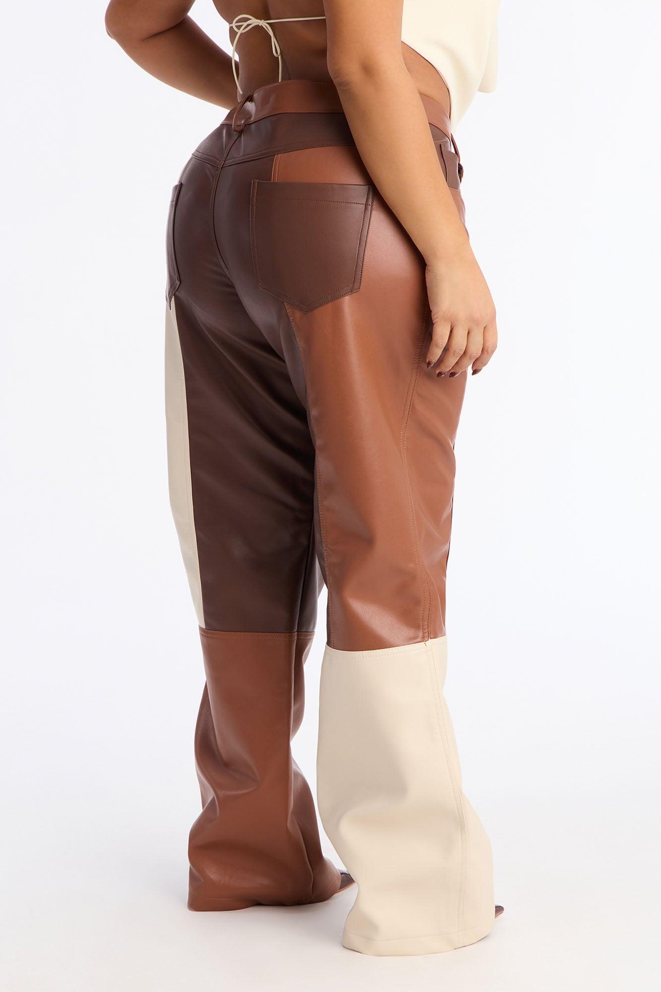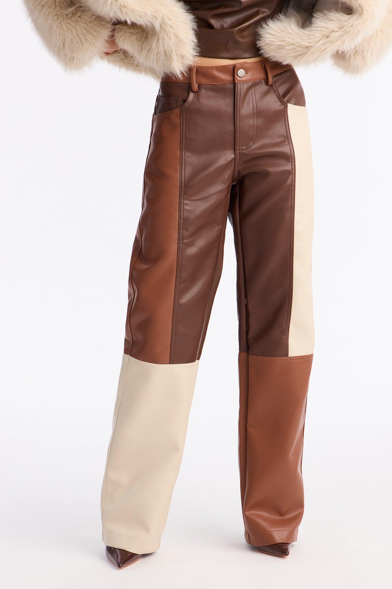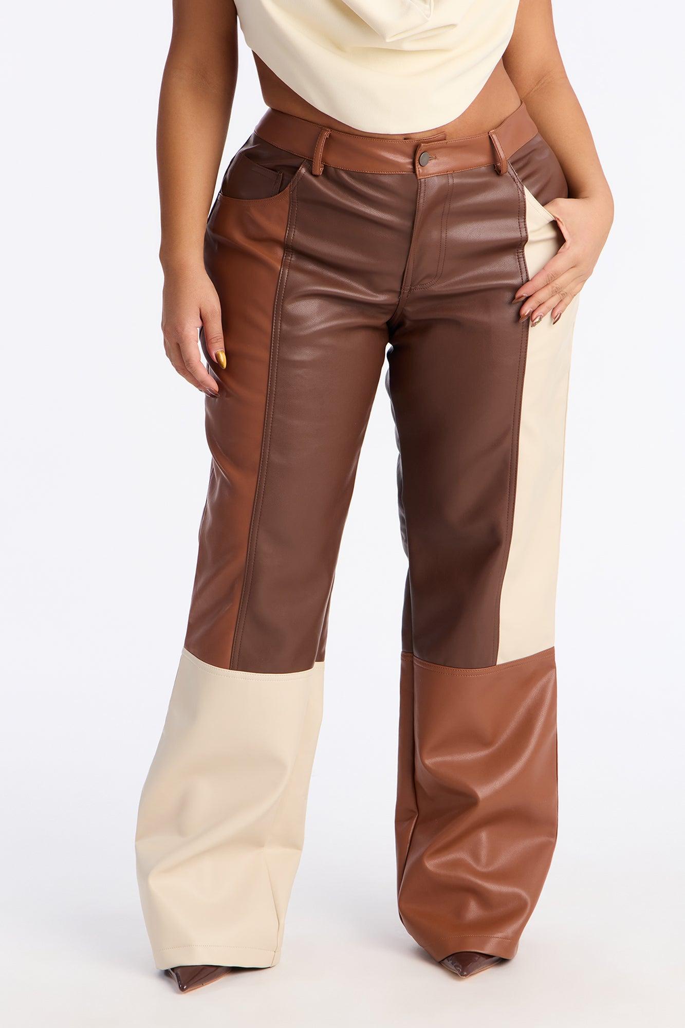 Mixed Feelings Faux Leather Straight Leg Pant 32″ - Brown/combo Female