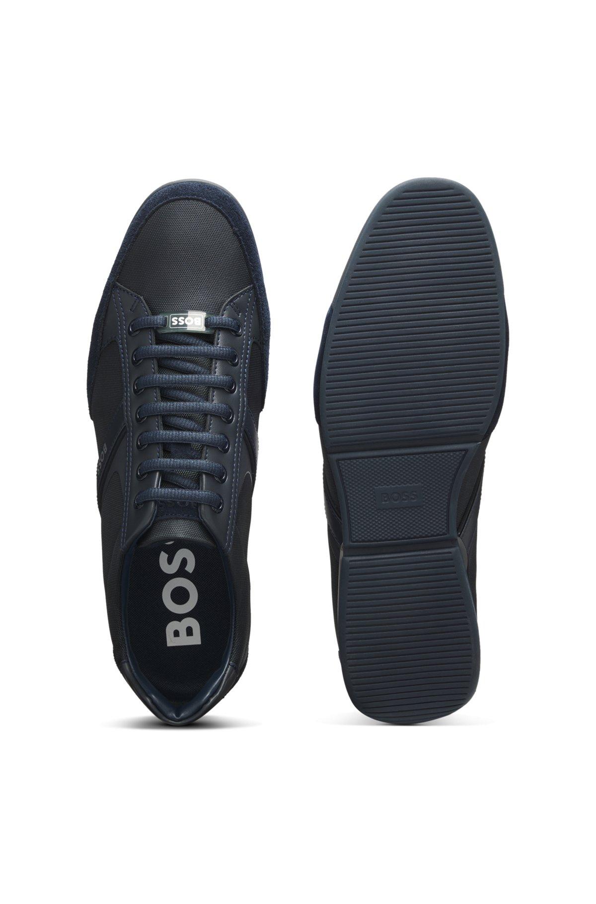 Mixed-material trainers with suede and faux leather - Dark Blue Sneakers from BOSS for Men for in the official HUGO BOSS Online Store free shipping