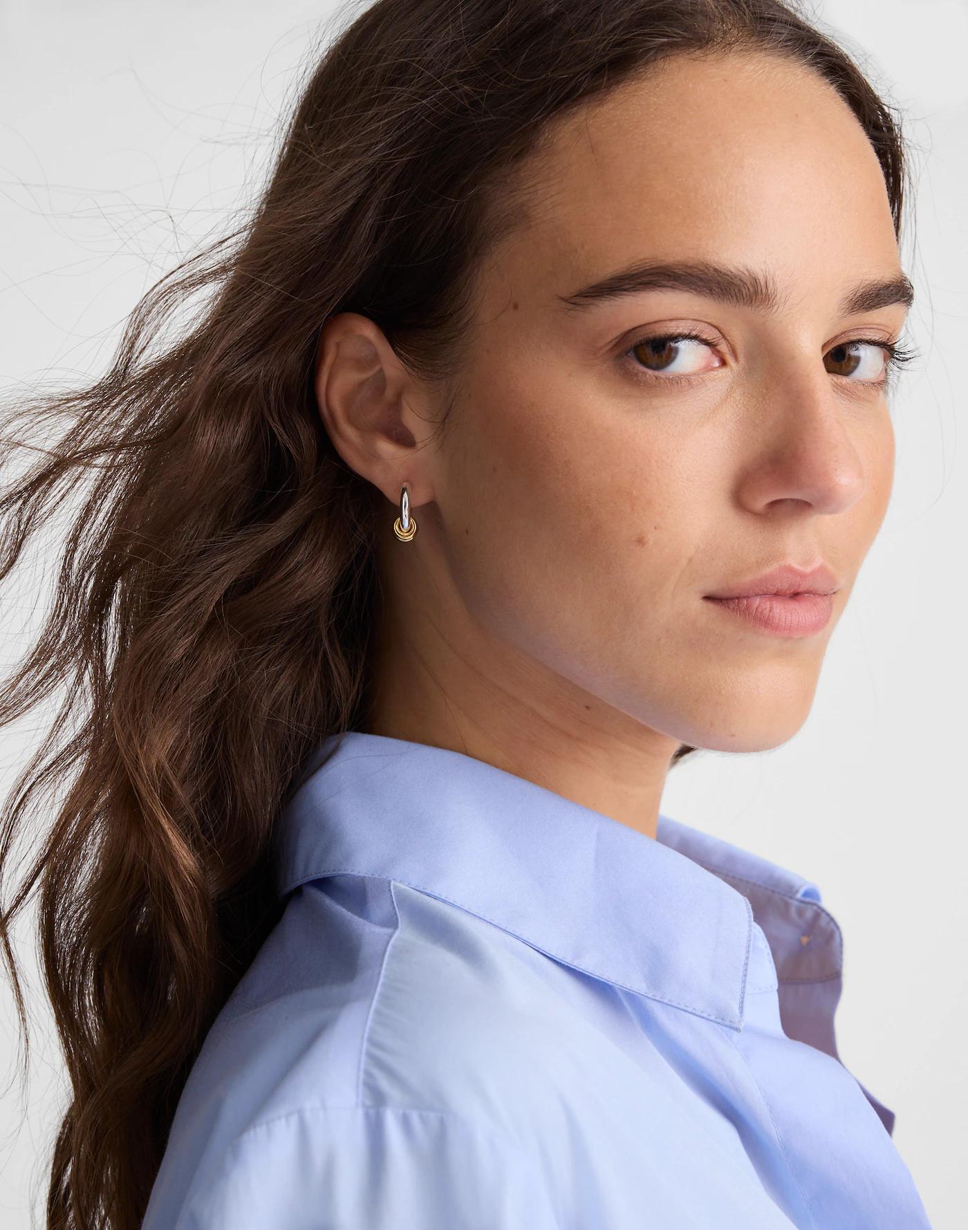 Mixed-Metal Triple Ring Huggie Hoop Earrings
