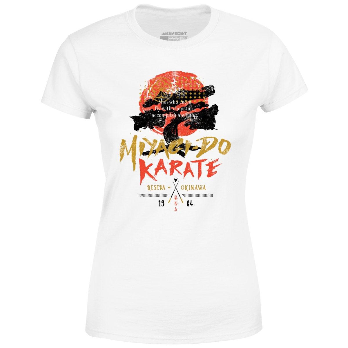 A tribute to Mr. Miyagi. An original fan art custom design for Miyagi-Do Karate. Inspired by The Karate Kid. Printed on our super soft 100% ringspun & combed cotton women's T-Shirt. Or upgrade to our Luxury 52/48 cotton/poly vintage heather edition for an even softer classic look. We print & ship all of our high quality graphic tees in the USA.