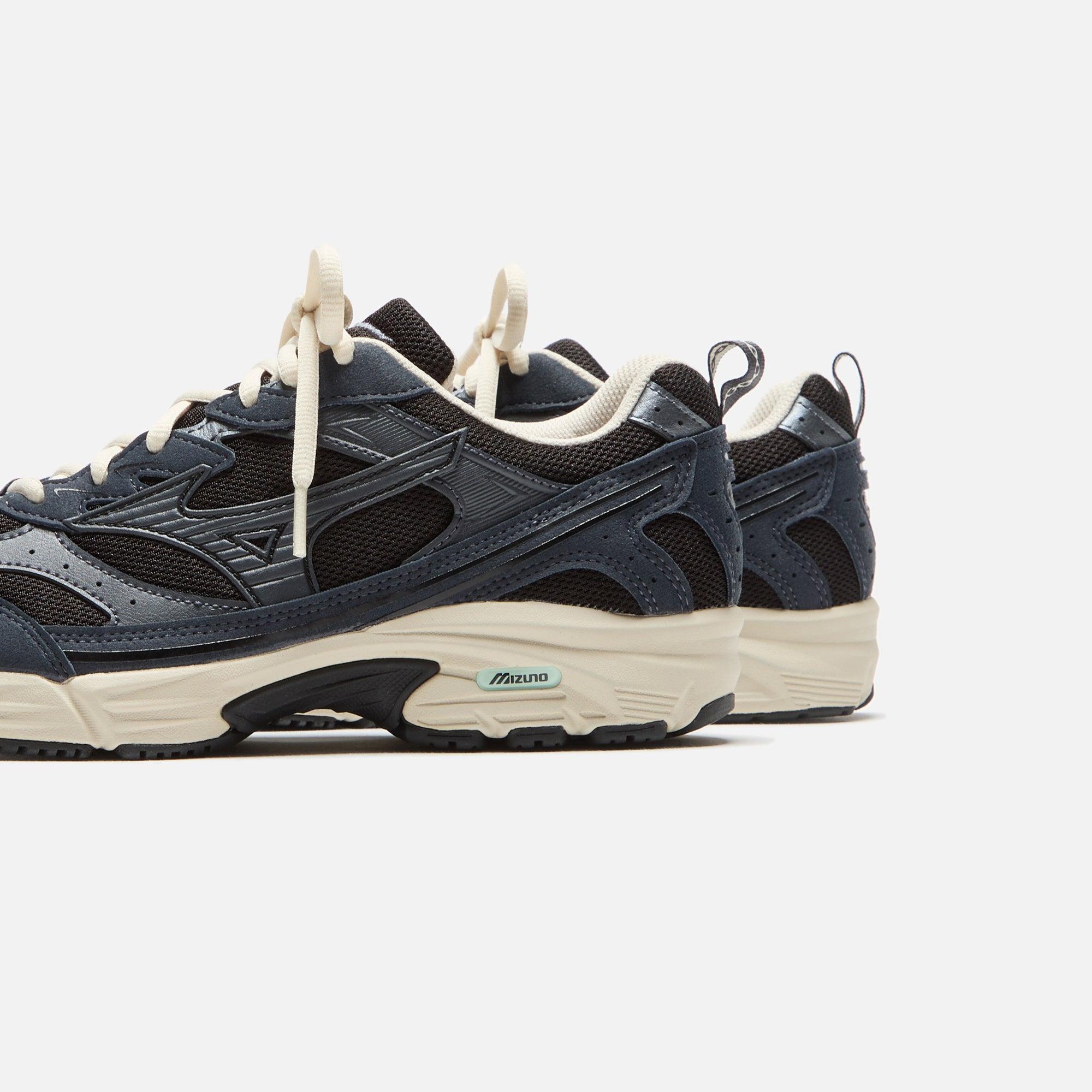 MXR silhouette Mesh upper Synthetic overlays Rubberized toecap Mizuno branding on tongue Reflective accents Formstripes on lateral sides Rope laces Branded heel pull Mizuno branding on heel Foam footbed and midsole Rubber outsole Style: mud1ga246702 Color: Black / Ebony / Ice Morning Material: Mesh / Synthetic