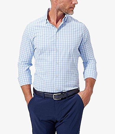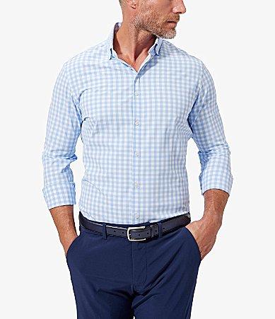 From Mizzen+Main, this shirt features:gingham patternspread collarlong sleeves with two-button cuffsbutton-front closurecurved hemtrim fitsuperior quick dry propertiesmoisture wicking, 4-way stretch fabricpolyester/spandexmachine wash; tumble dryImported.