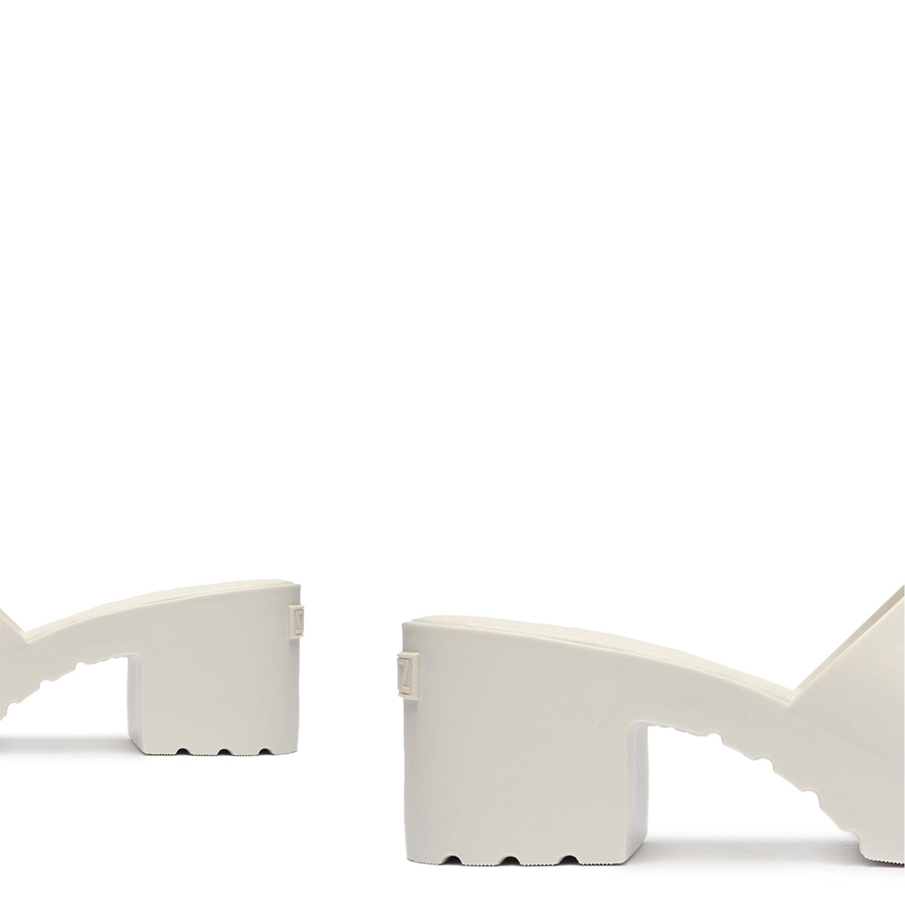 Channel a retro mood in the Mizzy Sandal, a minimal platform-style crafted from jelly. Materials: PVC | Jelly lining | Jelly outsole Upper format: Unique strap Upper Detail: Embellished upper Rubber patch at the heel. Heel Type: Mid heel Heel Style: Platform Closure Type: Slip-on Toe Style: Square toe Counter Type: Slip-on Platform Height: 20mm Heel Height: 2.54in | 65mm SKU: S2119100010012 Fit: If you are in between sizes, we recommend selecting the next whole size up. Material: PVC