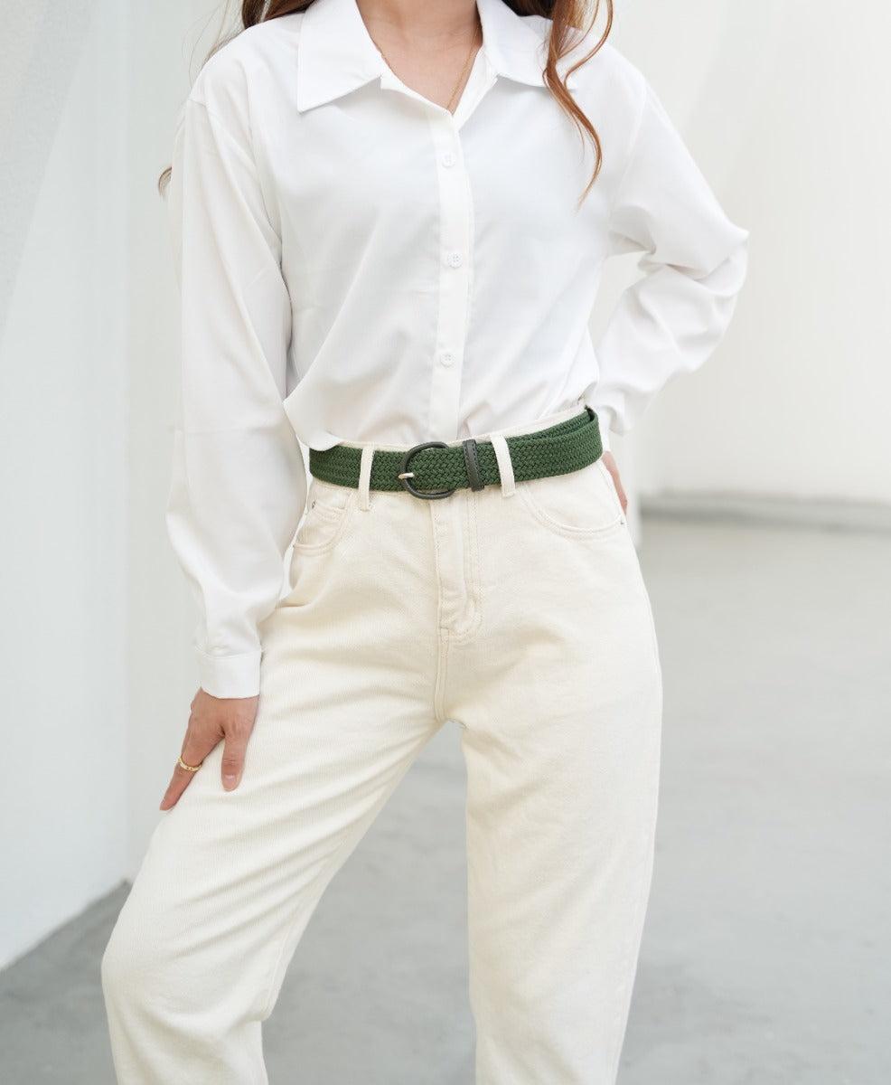 A classic and versatile comfort belt. Made of woven fabric that stretches and moves with you. Great to pair with jeans, skirts, or shorts. The sleek buckle finish for a classic casual look. With no belt holes, this belt is fully adjustable. This belt can be secured anywhere along the braided center as needed or desired.