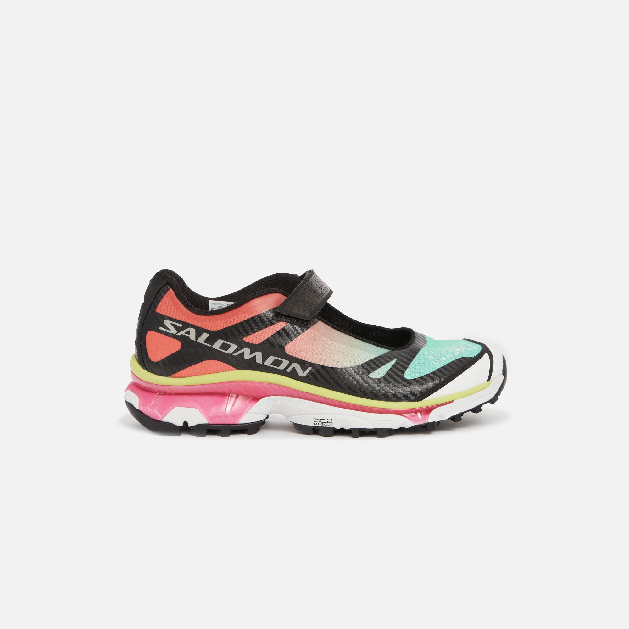 Women's MM6 Maison Margiela x Salomon XT-MARY J silhouette Textile upper Padded collar Open-toe upper Rubber toecap Agile Chassis™ System MM6 branding at toe MM6 branding on velcro strap Salomon branding along lateral side Velcro strap EnergyCell™ Midsole All Terrain Contagrip® Outsole Style: s66ws0102p7010ha454 Color: Ginger / Electric Green / Knockout Pink Material: Textile