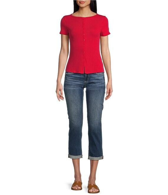 Moa Moa Crewneck Neck Short Sleeve Button-Front Top