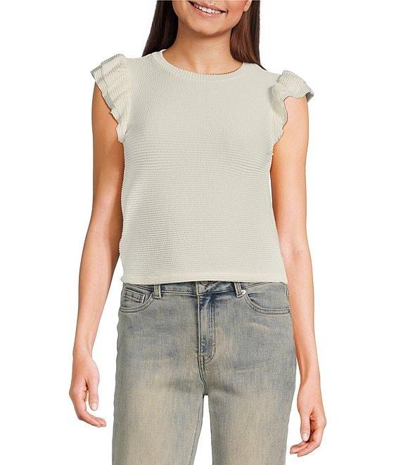 Moa Moa Crewneck Ruffle Short Sleeve Top