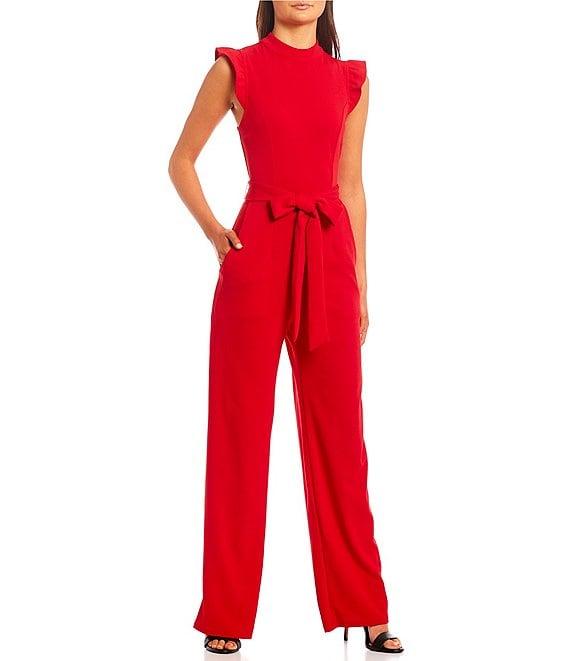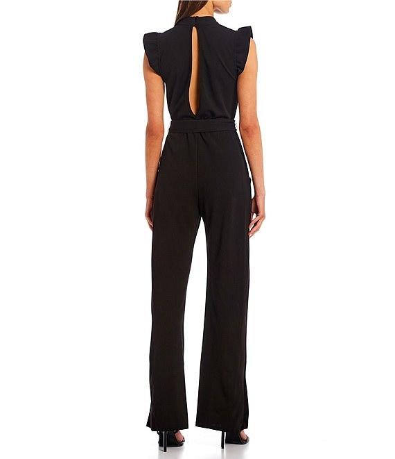 Moa Moa High Neck Flutter Sleeve Tie Waist Jumpsuit