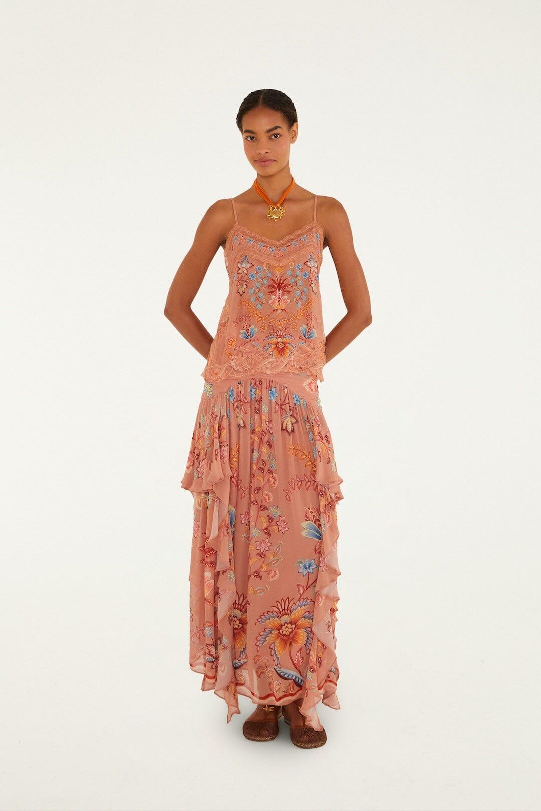 Embrace effortless elegance with the Mocha Boho Enhance Ruched Ruffled Maxi Skirt by FARM Rio. Its warm mocha hue beautifully complements the playful ruching that gently sculpts the silhouette, while cascading ruffles add a touch of whimsical movement. Crafted to flow with every step, this skirt blends comfort and charm, inviting sunny days and breezy adventures wherever you go. A perfect harmony of relaxed bohemian spirit and feminine grace. Closure: Invisible Zipper At Center Back Button type: Plastic Buttons