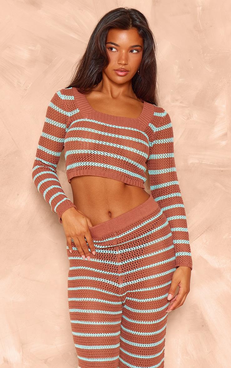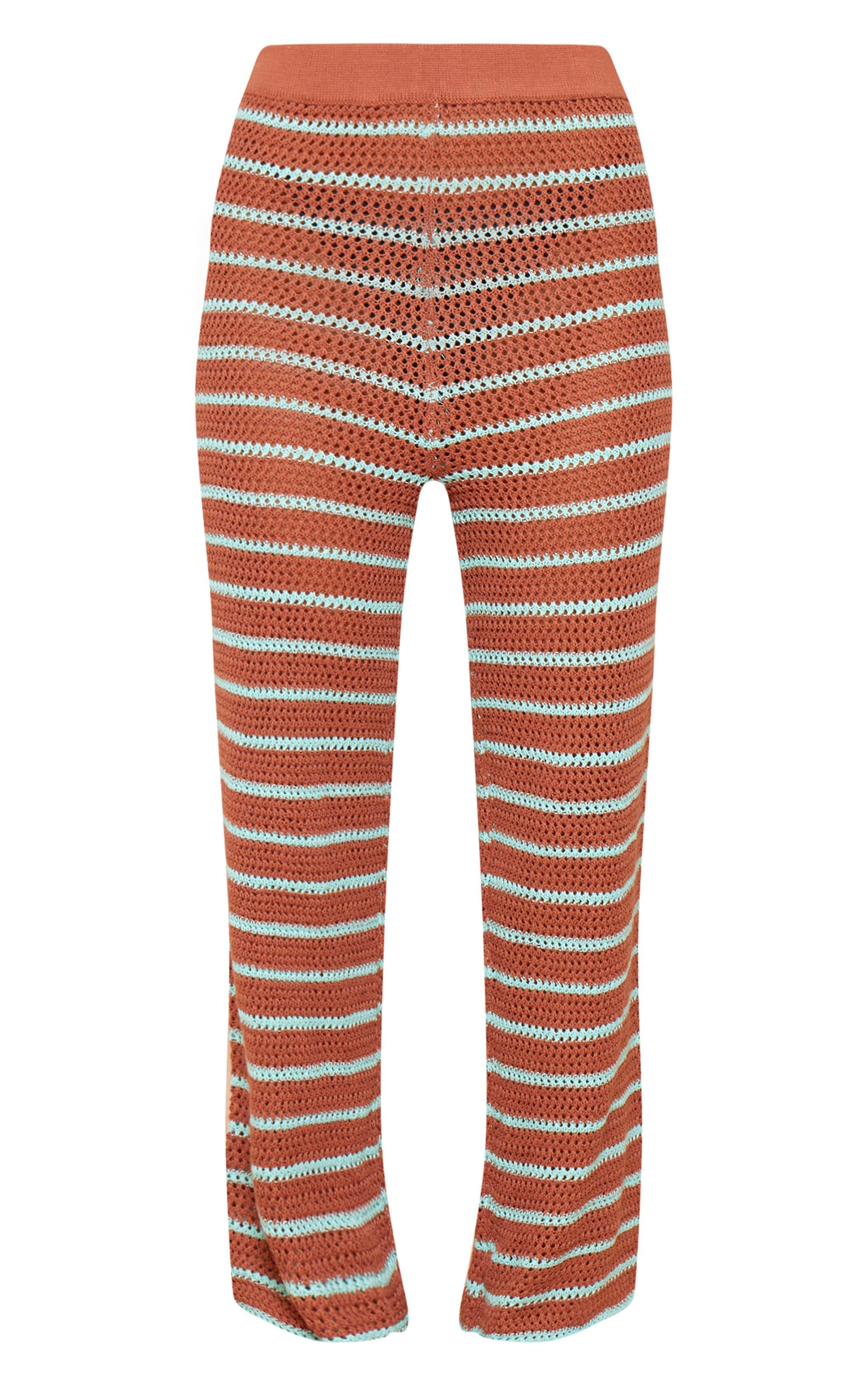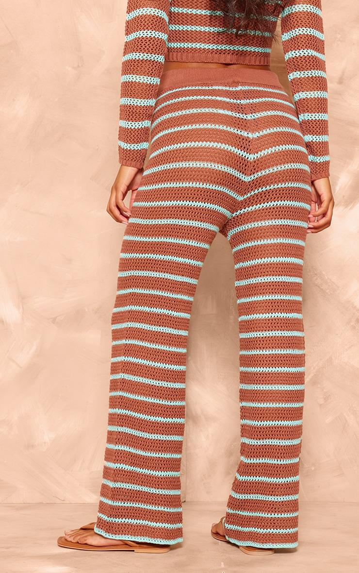 Take your everyday look to the next level with these mocha stripe crochet knit wide leg pants, perfect for your everyday styling and beyond. Brought to you in a mocha knit material with a stripe crochet design, we simply can't get enough. With a wide leg fit, these pants have a versatile style and they are sure to be your new go-to. Style with the matching top, a pair of sandals and accessories of your choice for a look that we can't get enough of. Length approx 78cm/30.5inch (Based on a sample size S) Model wears size S Length may vary due to crochet knitModel Height - 5ft 7inchp]:!mb-0inch>Category: KnitwearProduct type: TrousersColor: MochaMaterial: Crochet KnitOccasion: Day