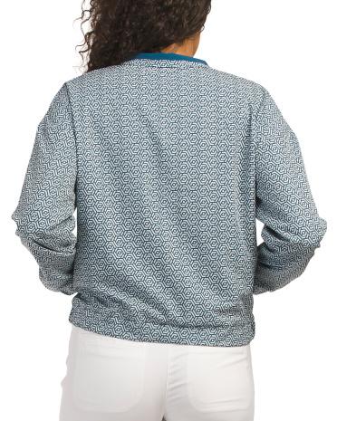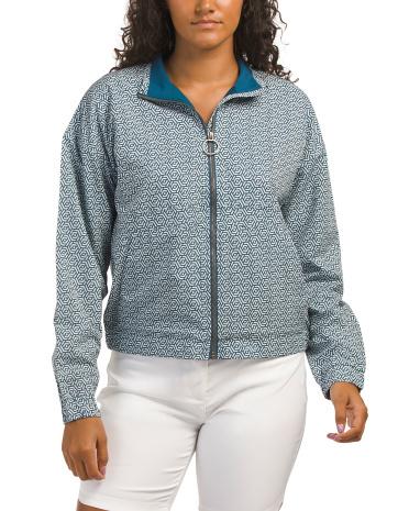 Printed Design, 2 Side Pockets, Moisture Wicking, Breathable Respirant, Lightweight, Flexible 4 Way Stretch, Hits At Hip, Lightweight, Mock Neck, Front Zip Closure, Polyester/spandex, Imported | Mock Collar Full Zip Jacket for Women