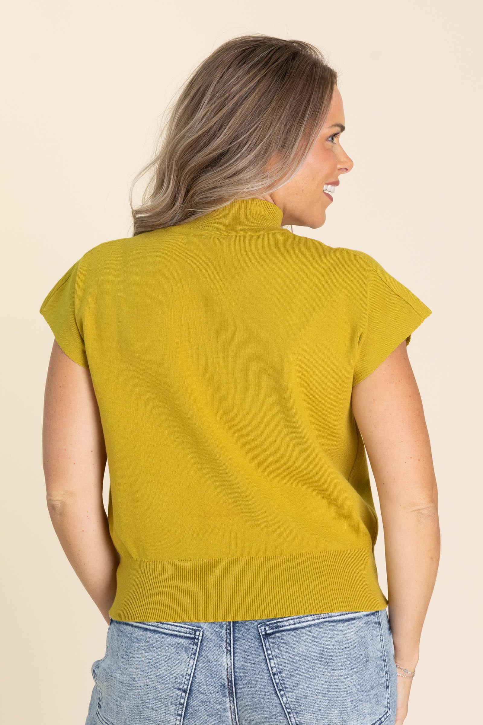 Product Details Colors: Black/ Dark Mustard Print: Solid Neckline: Mock Neck Sleeve: Cap Sleeve Hemline: Straight Brand: Like Love Material and Care 50% Viscose 28% Nylon 22% Polyester Hand Wash Cold Hang/ Line Dry Size and Fit Small: Bust 38" Waist 36" Length 21" Medium: Bust 40" Waist 38" Length 21.5" Large: Bust 42" Waist 40" Length 22" 1X Large: Bust 46" Waist 44" Length 23" 2X Large: Bust 48" Waist 46" Length 23.5" 3X Large: Bust 50" Waist 48" Length 24"