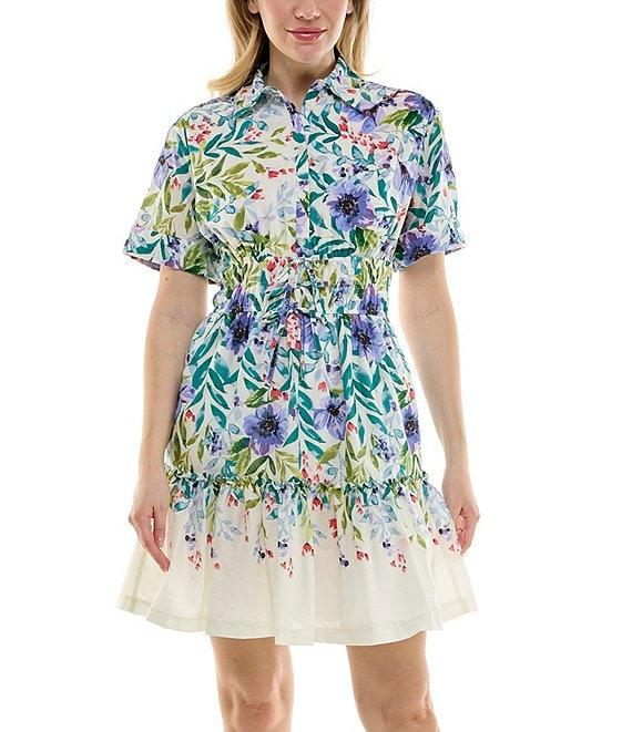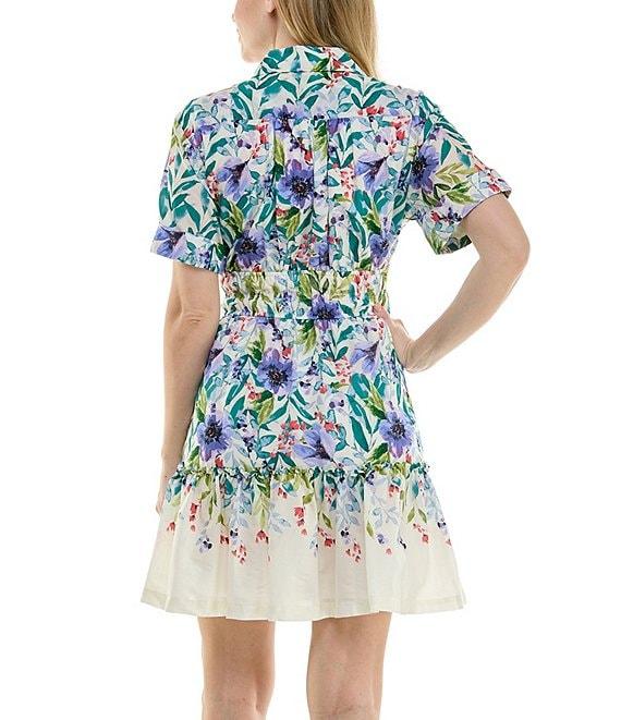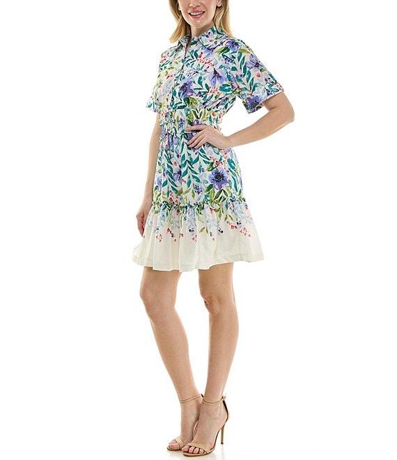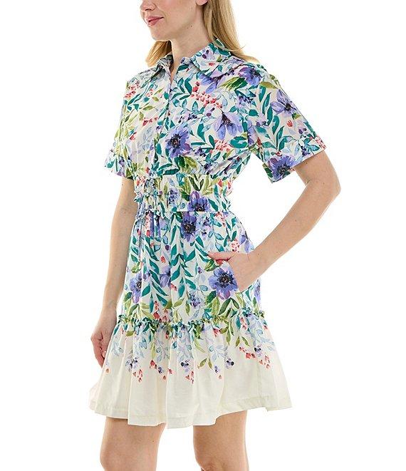Moda Tara Cotton Floral Print Button Front Collar Tiered Shirt Dress