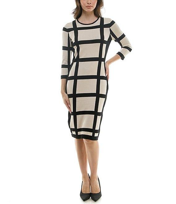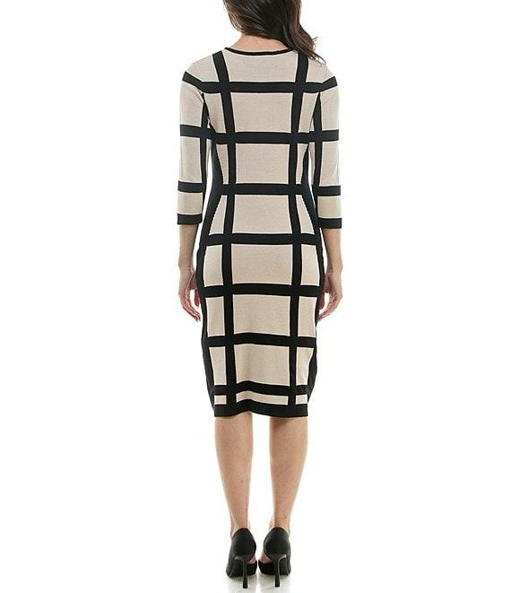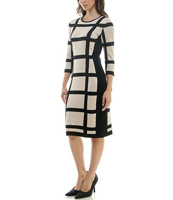 Moda Tara Crew Neck 3/4 Sleeve Sweater Stretch Knit Sheath Dress
