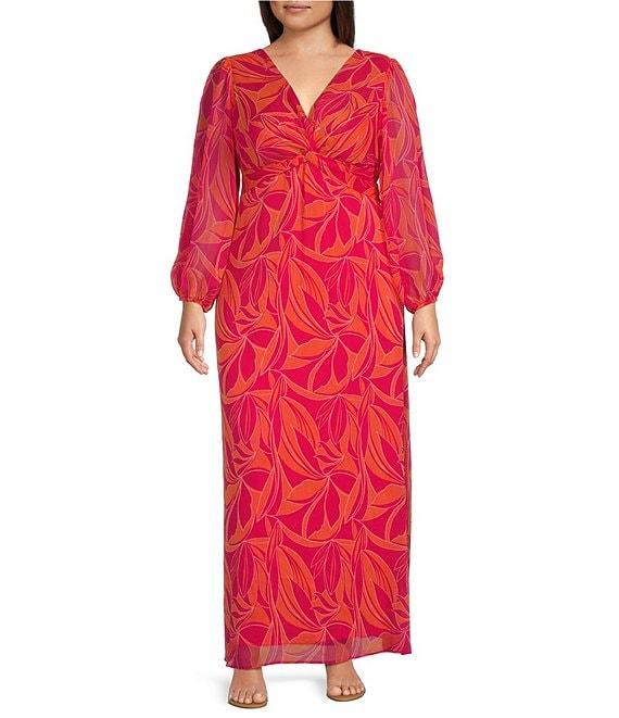 Moda Tara Plus Size Long Sleeve Floral Print Maxi Dress