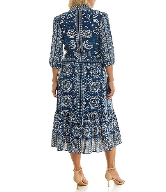 Moda Tara Plus Size Point Collar Button Front Printed Midi Dress