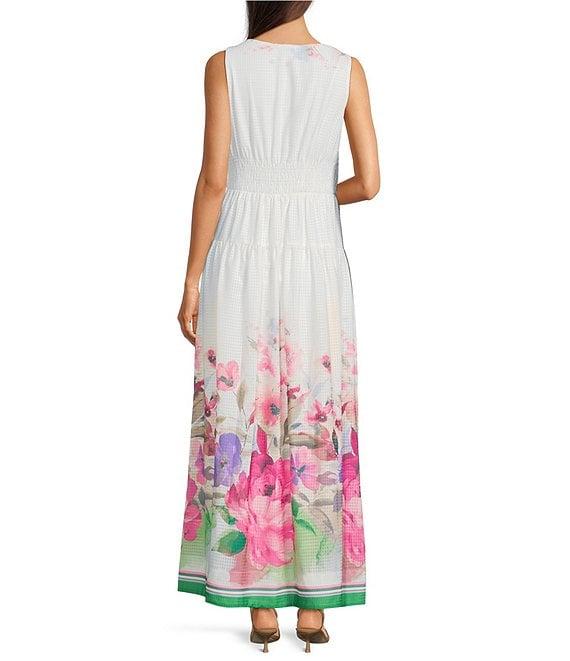 Moda Tara V-Neck Chiffon Sleeveless Floral A-Line Maxi Dress