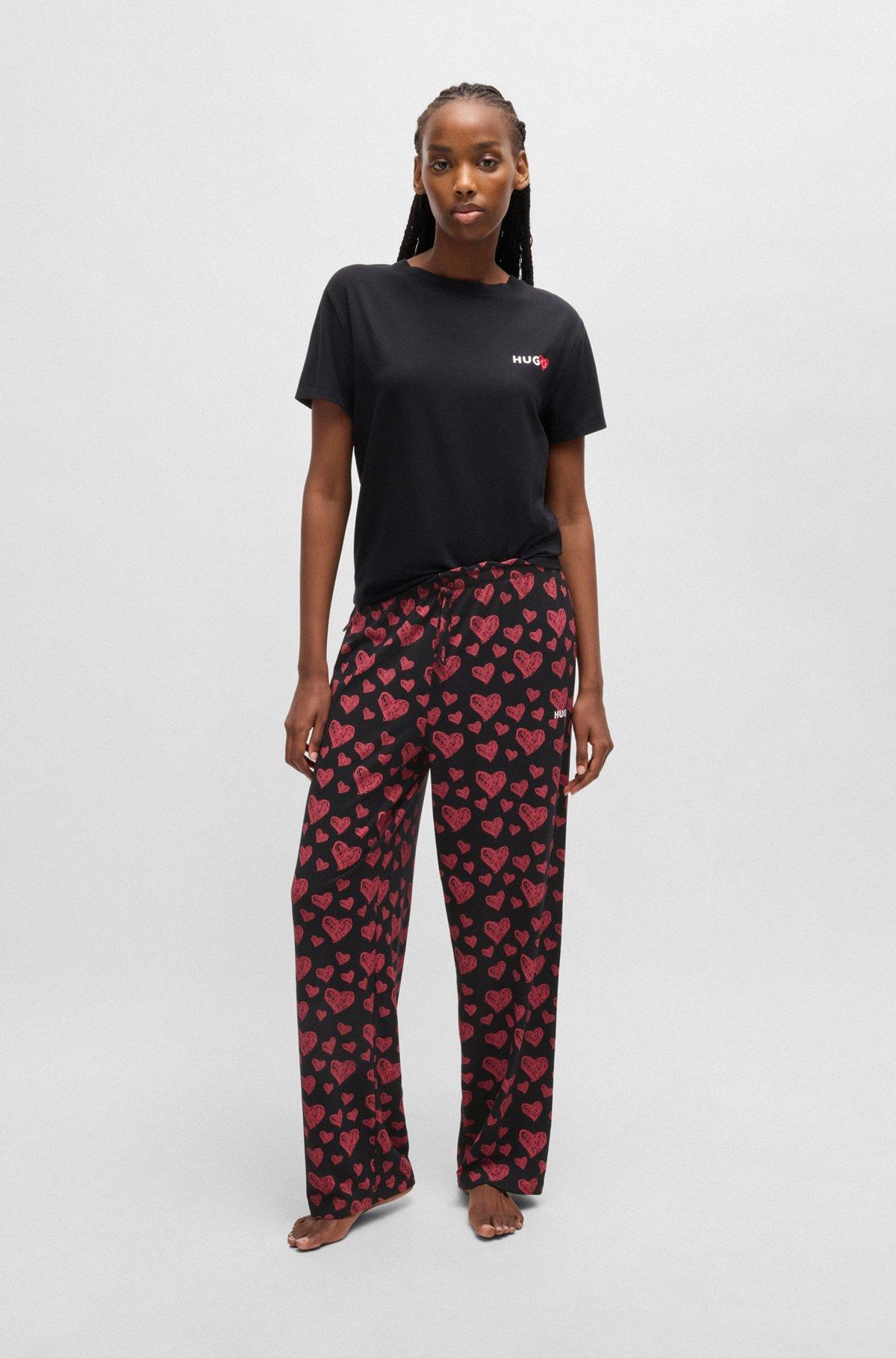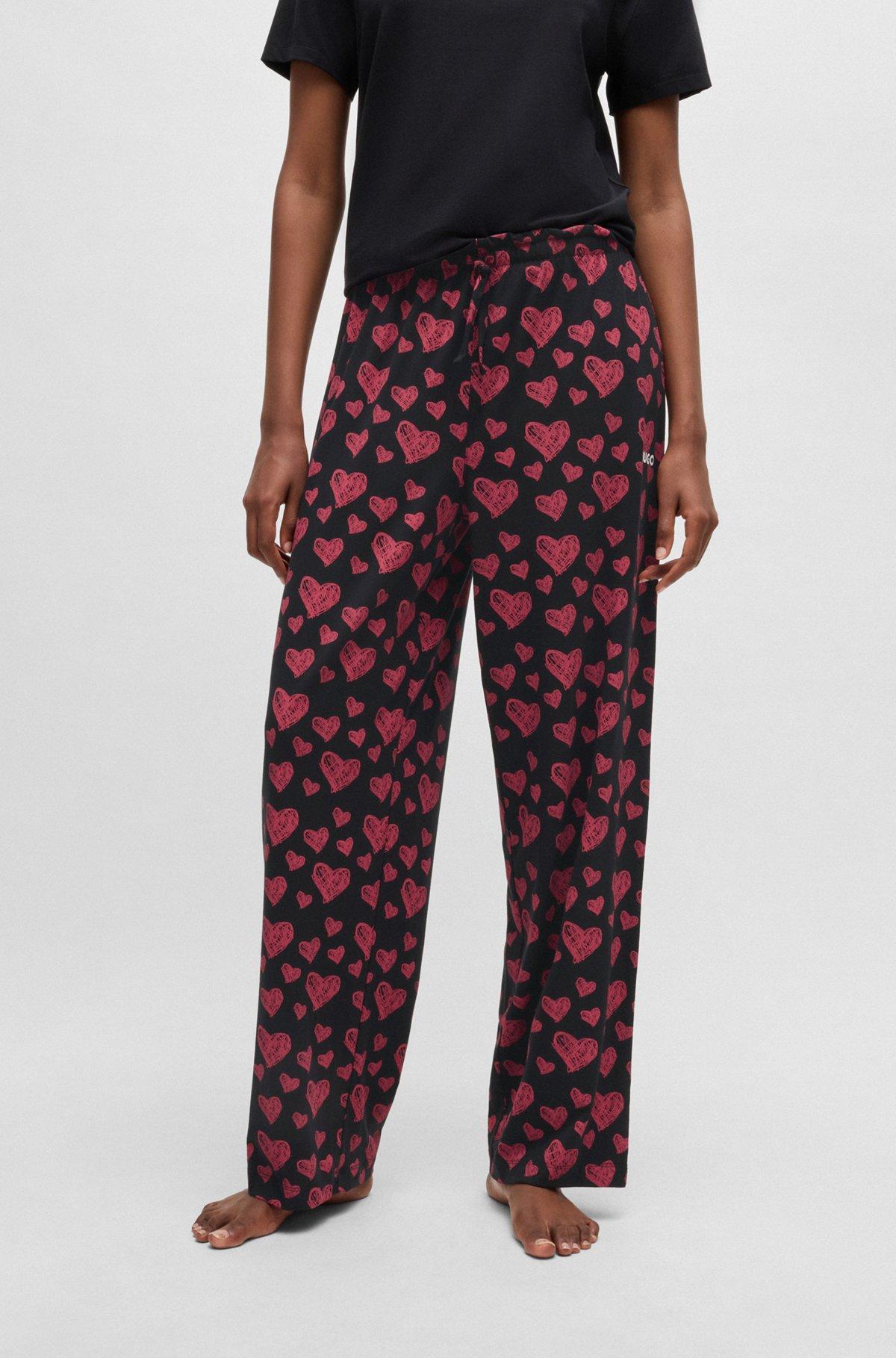 Breathable stretch-jersey pajama bottoms by HUGO Womenswear. Featuring a HUGO logo, this straight-leg pair is printed all over with a playful heart motif.