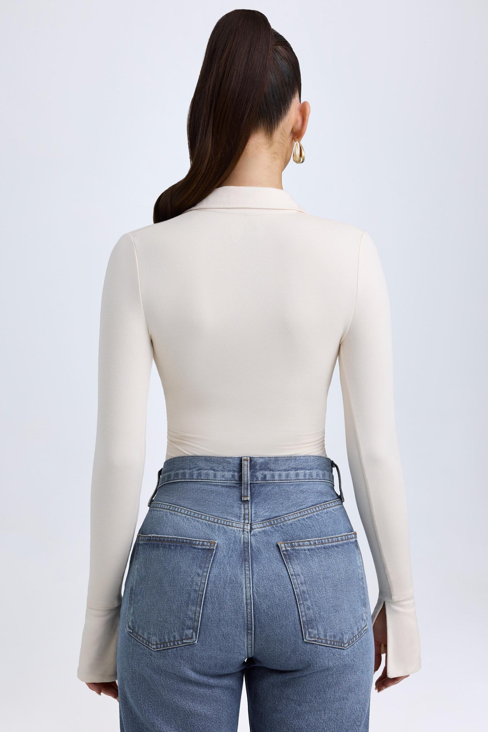A style you’ll want in every colour, the Yanna bodysuit is crafted from breathable and buttery soft jersey made with TENCEL™ Modal fibres that support a natural dry feeling through moisture control. Designed with thong-back coverage for seamless layering, it’s framed with flared long sleeves and a plunging collared neckline.Plunge V-neck with collarLong sleeves with flared cuffsRuched detailing Thong coveragePopper fastenings at basePull-on designBodycon silhouetteStandard bodysuit length, front rise approx. 31.5cm based on a size SProduct code: 12447