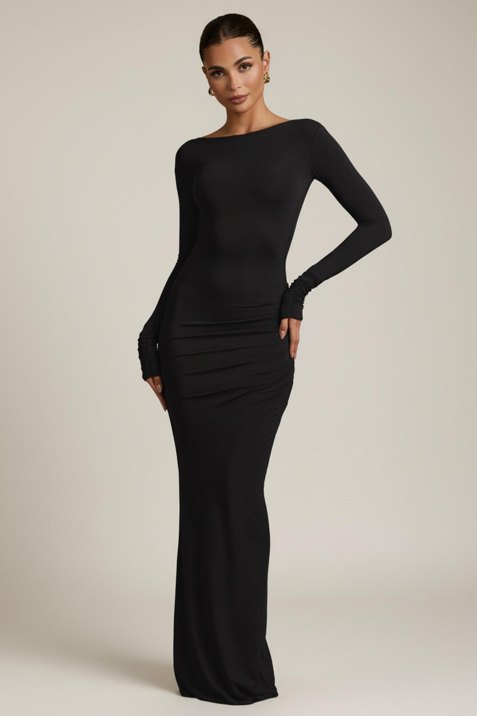 Go from day to night with the Regine maxi dress. A timeless style you’ll always reach for, it’s crafted from stretchy and breathable jersey made with TENCEL™ Modal fibres that are naturally soft and smooth to the touch. It’s cut to a figure-hugging fishtail silhouette framed with a flattering boat neck, precise ruching at the sides for enhanced comfort and a stunning open back. High boat neckLong fitted sleevesRuched detailing at sidesCircular cut-out at backPull-on designFishtail silhouette We recommend styling with nipple covers from our Intimates collection for enhanced coverageMaxi length, SNP to hem approx. 154cm based on a size SProduct code: 13570