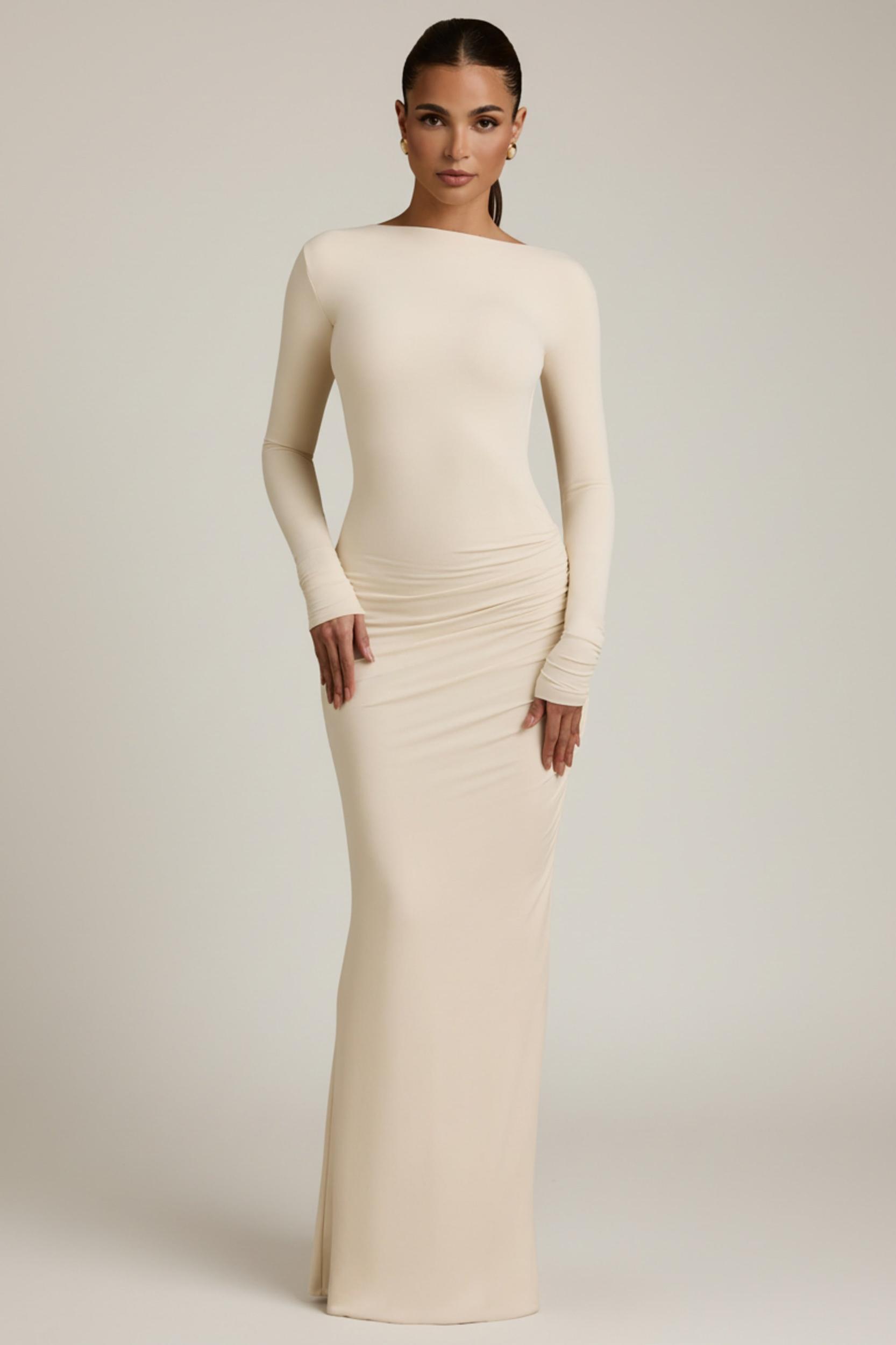 Go from day to night with the Regine maxi dress. A timeless style you’ll always reach for, it’s crafted from stretchy and breathable jersey made with TENCEL™ Modal fibres that are naturally soft and smooth to the touch. It’s cut to a figure-hugging fishtail silhouette framed with a flattering boat neck, precise ruching at the sides for enhanced comfort and a stunning open back. High boat neckLong fitted sleevesRuched detailing at sidesCircular cut-out at backPull-on designFishtail silhouette We recommend styling with nipple covers from our Intimates collection for enhanced coverageMaxi length, SNP to hem approx. 154cm based on a size SProduct code: 13570