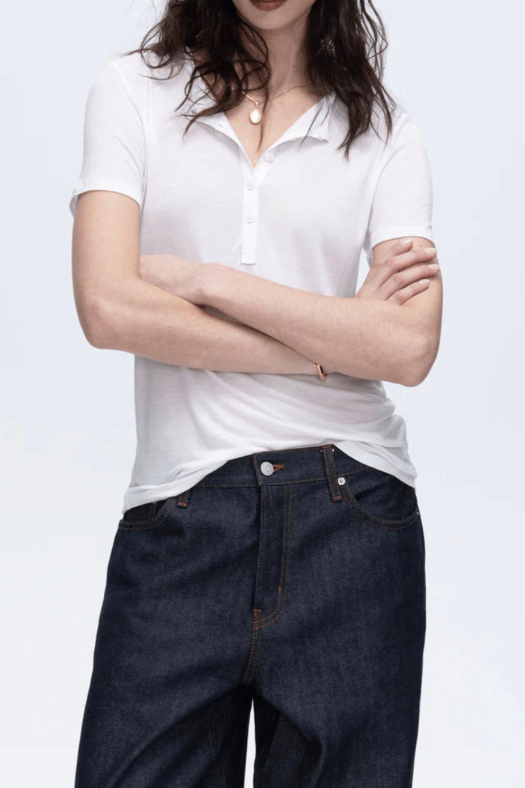 Refined simplicity meets effortless elegance. Crafted from ultra-soft modal jersey, this white Henley features an adjustable open neckline with buttons and relaxed sleeves for a perfect blend of comfort and sophistication. A luxurious essential for any wardrobe, designed to elevate your everyday style.