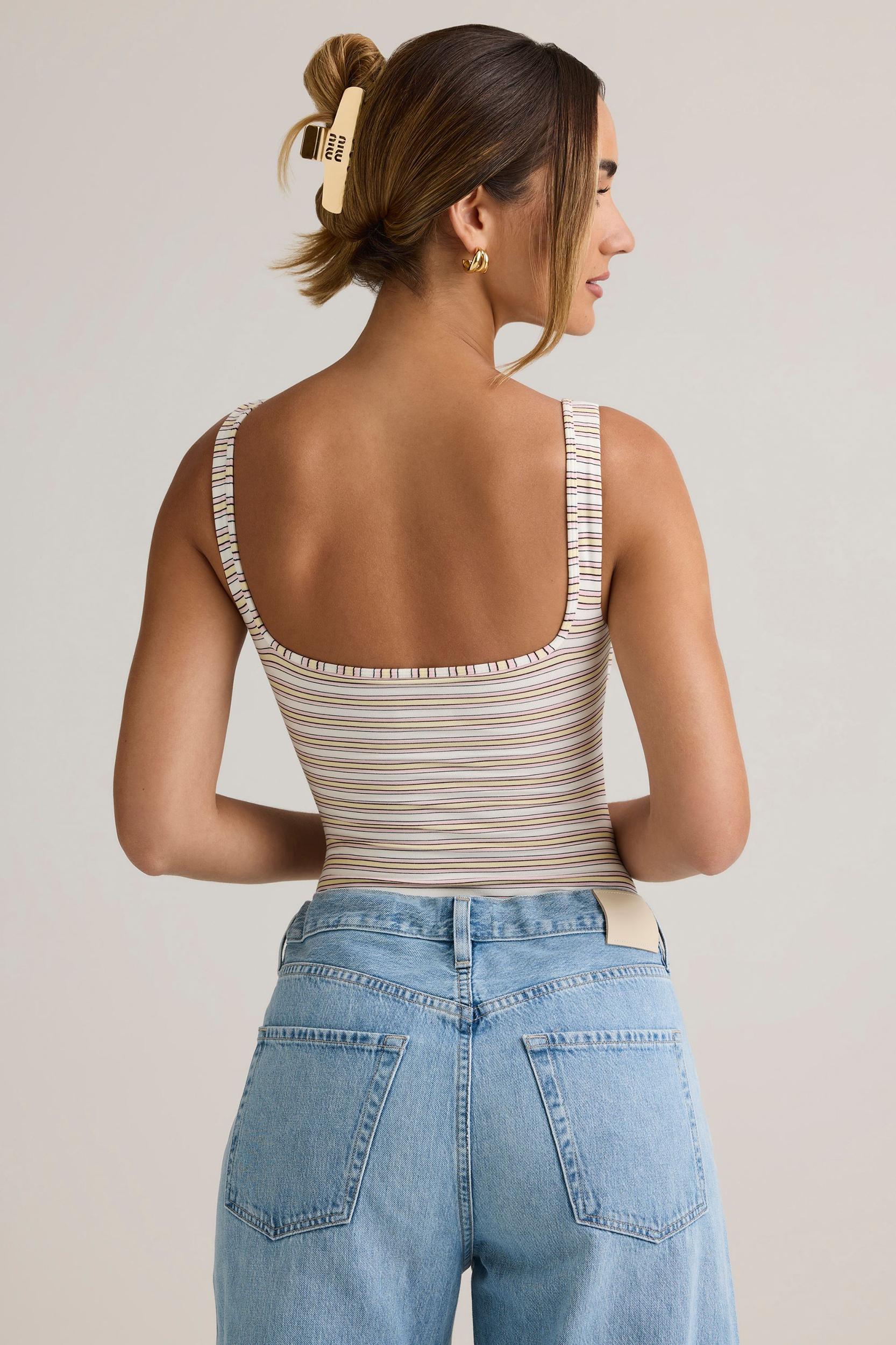 A playful update for your spring wardrobe, the Jolla bodysuit is crafted from buttery soft and stretchy jersey made with TENCEL™ Modal fibres, derived from controlled or certified wood sources. Designed with a universally flattering square neckline, it’s framed with fixed tapered shoulder straps, features cheeky-back coverage and is cut for a bodycon fit for seamless styling under your favourite skirts, jeans and trousers. Square neckFixed tapered shoulder strapsStripe printCheeky-back coverage Pull-on designBodycon silhouetteStandard bodysuit length, centre front approx. 48cm based on a size SProduct code: 14145