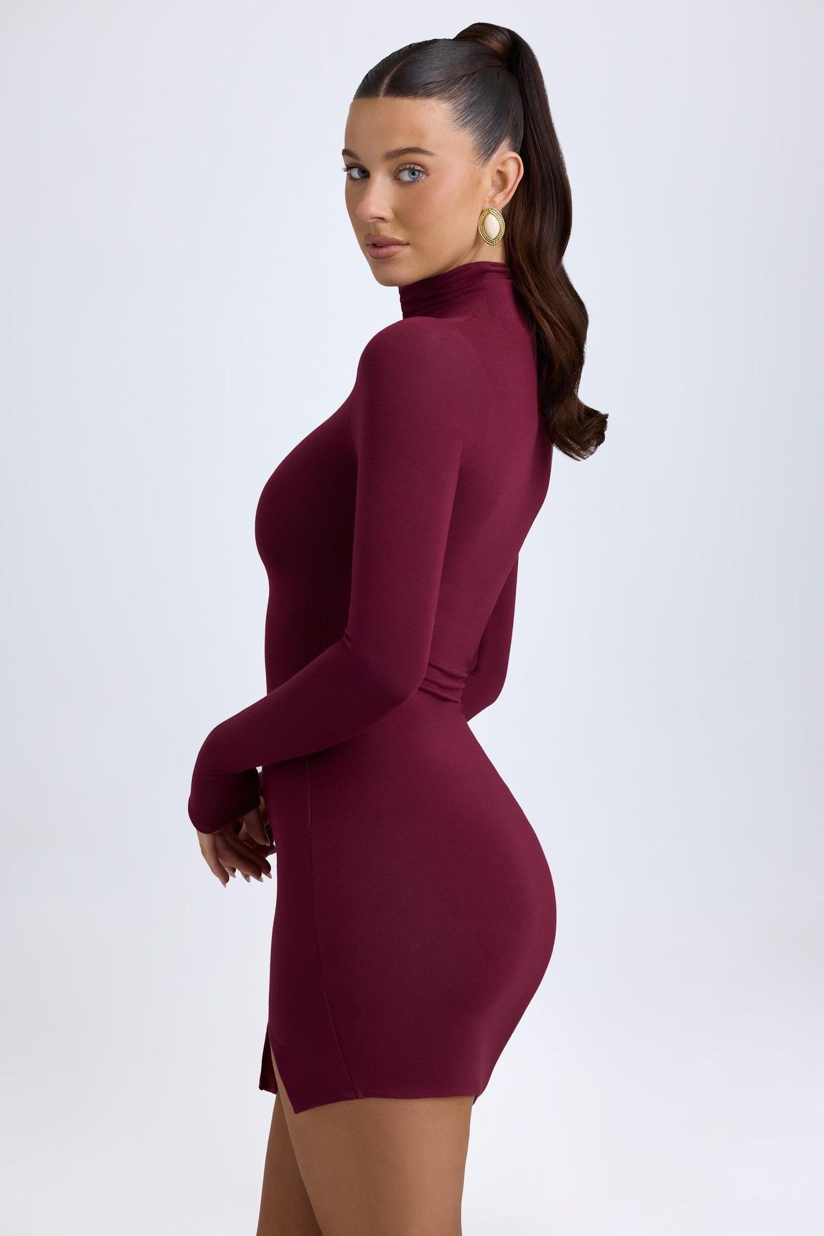 A versatile style for any occasion, the Amira mini dress is crafted from buttery soft, breathable and stretchy jersey made with TENCEL™ Modal fibres derived from controlled or certified wood sources. It’s cut to a chic bodycon silhouette framed with a classic turtleneck and a subtle side split. The fitted sleeves are lightly ruched for versatile styling.• Turtleneck• Long fitted sleeves• Ruched detailing• Side split• Pull-on design• Bodycon silhouette• Mini length, SNP to hem approx. 82cm based on a size S• Product code: 13409