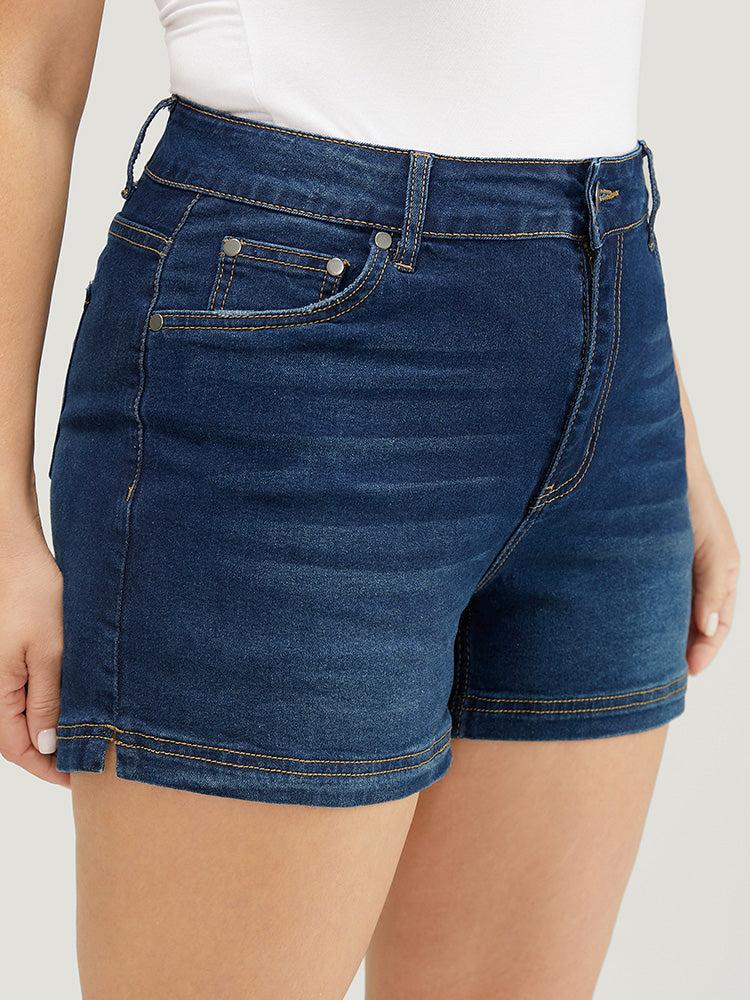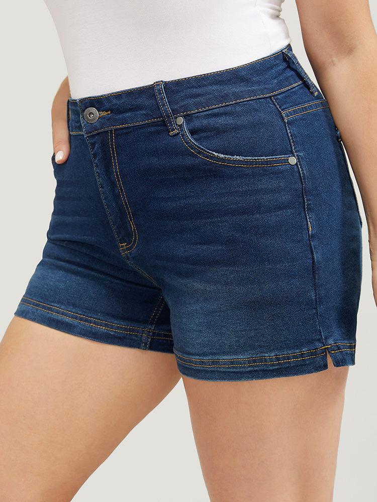 Shop Moderately Stretchy High Rise Dark Wash Split Hem Denim Shorts now and redefine your style with confidence at BloomChic. Tailored for mid and plus-size women. This trendy Denim Women, sizes 10-30. Color:Midnight;Style:Casual;Pattern Type:Plain;Pocket:It is perfectly sized to carry a phone.;Belt:No-belt;Wash:Dark Wash