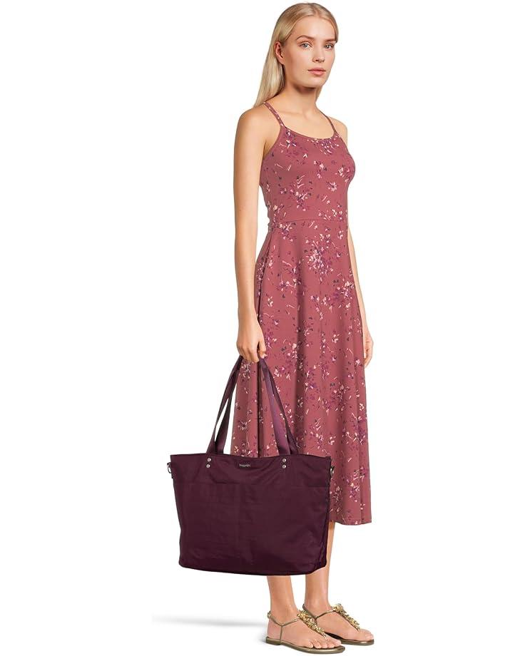With the ability to be worn as a shoulder bag or crossbody, this spacious Baggallini® Carryall Laptop Tote is a must-have for your work week, upcoming travels, or trips. Store your computer in the secure 15" padded laptop sleeve. For smaller items that require fast access, exterior slip pockets and an anti-theft card wristlet have you covered. Constructed from durable nylon material, this versatile bag features a removable and adjustable crossbody strap, dual grab handles, and a zippered top closure.