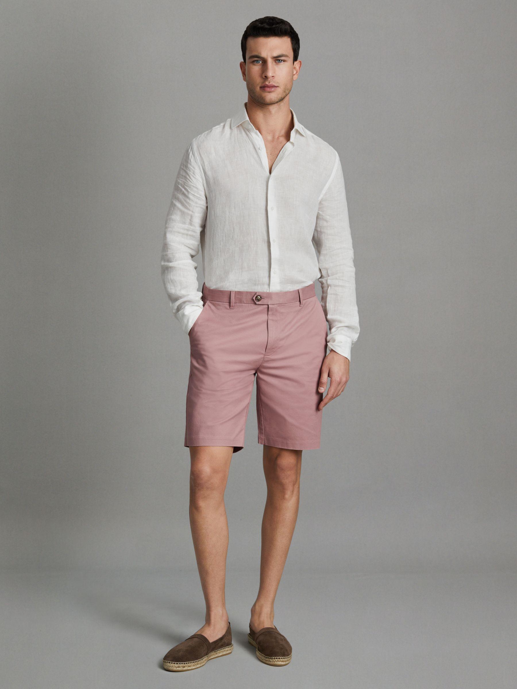 Cut from a cotton-stretch blend into a modern fit, the dusty pink Wicket chino shorts finish above the knee. Cotton-stretch blend. Side-slip pockets. Buttoned pockets to reverse. Modern fit. The model is wearing a size 32. Measurements of model: 6ft 2'' / 188cm.