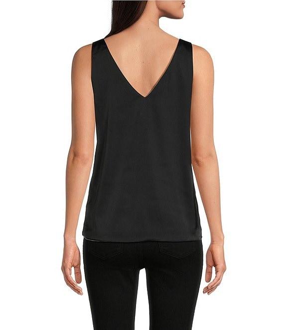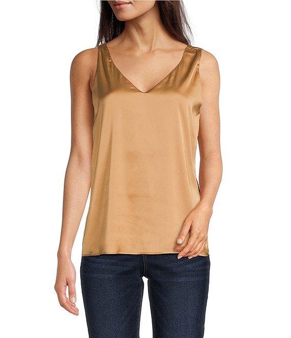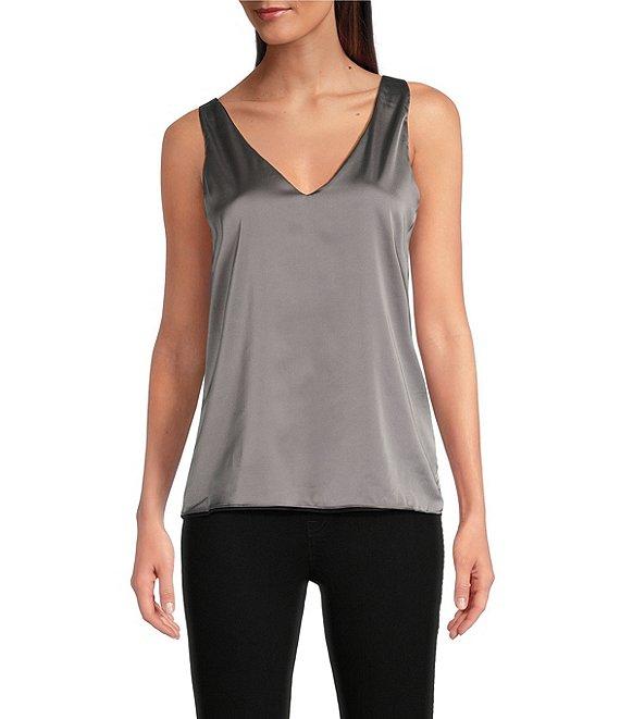 From Modern Movement, this tank features: Satin fabrication Reversible 2-way neckline: scoop and v-neckline Sleeveless Reversible two colorway Two layers of satin Pullover construction Polyester/spandex Hand wash/line dry Imported.