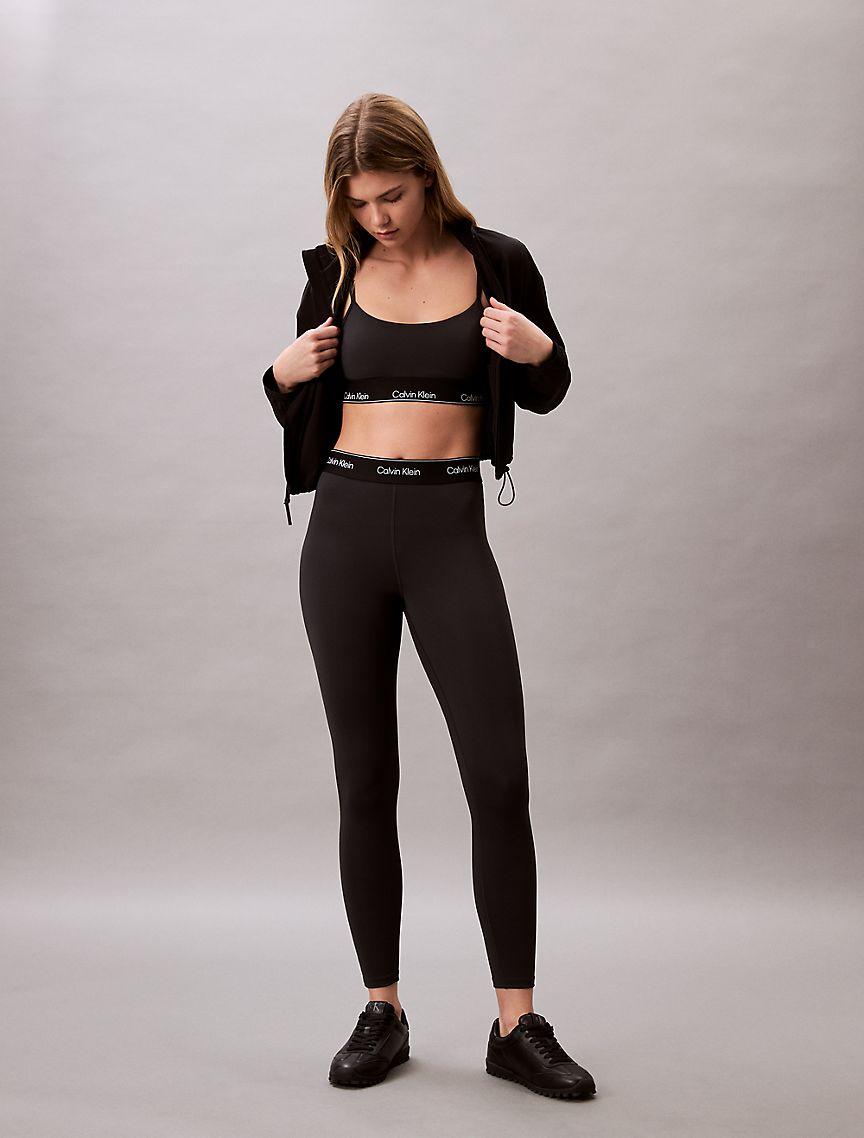 Minimalist with a solid body, this padded sports bra is constructed from moisture-wicking fabric for total comfort and breathability during workouts. Created with thin adjustable straps and a scoop neckline. Designed with an elastic underband detailed with repeating Calvin Klein logos.