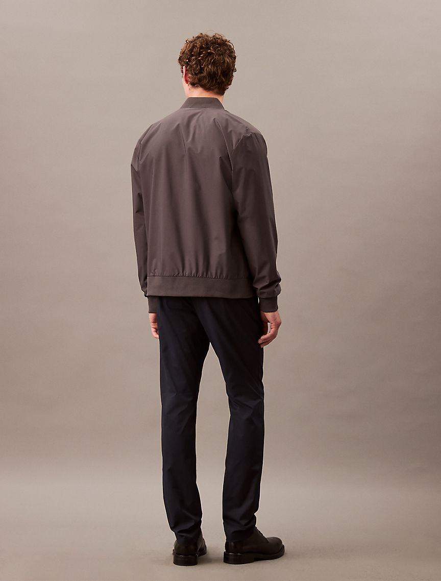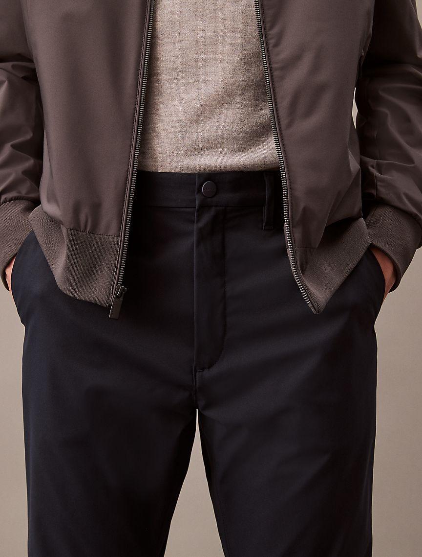 Refined and modern, this Calvin Klein trouser is crafted from an extra soft cotton stretch blend for all-day comfort. Perfect for travelers with wrinkle resistant properties, this trouser features signature logo detailing in a tailored slim fit.