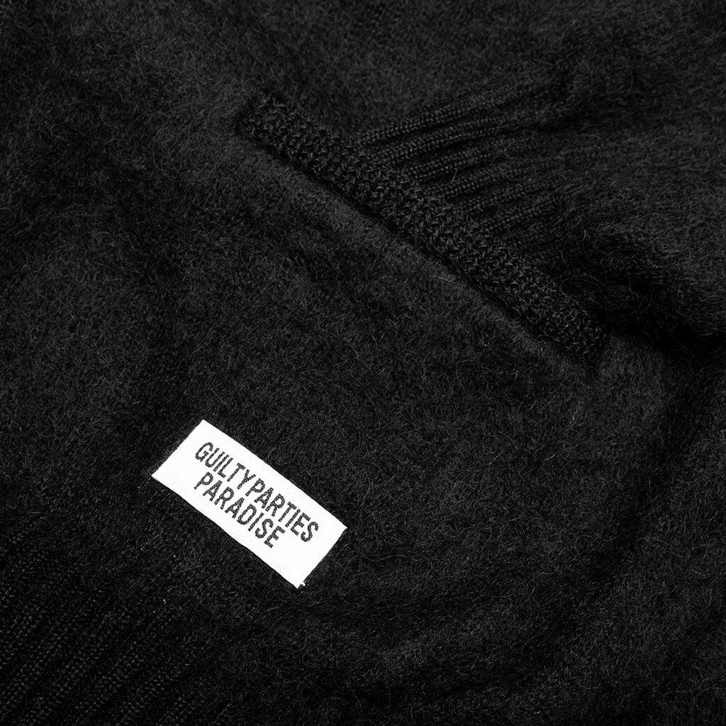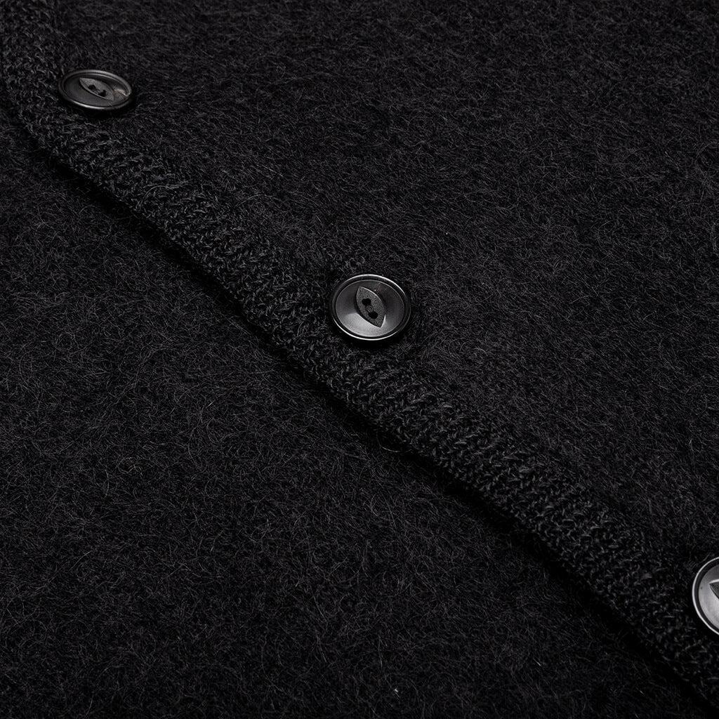 The Mohair Cardigan Type 2 from Wacko Maria is an elevated staple. Composed of soft mohair, the garment has a full button closure with a V-neckline and ribbed trims. Welt pockets at the front add storage. Some finishing touches include embroidered branding at the chest and a woven label tag near the hem. Mohair V-neckline Button closure Ribbed trims Hand pockets Embroidered branding Woven label tag Style No: 24FW-WMK-KN26-BLK
