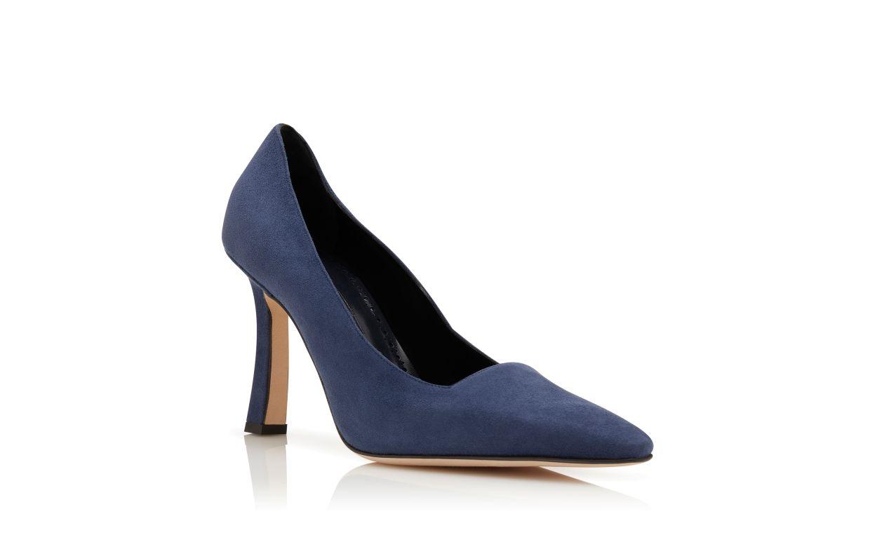 MOIRA Navy Blue Suede Square Cut Pumps